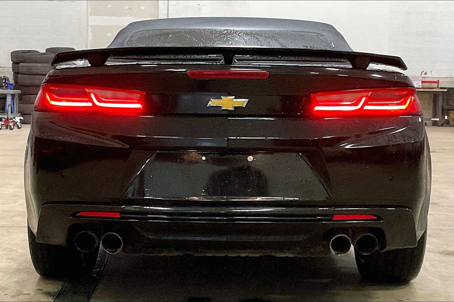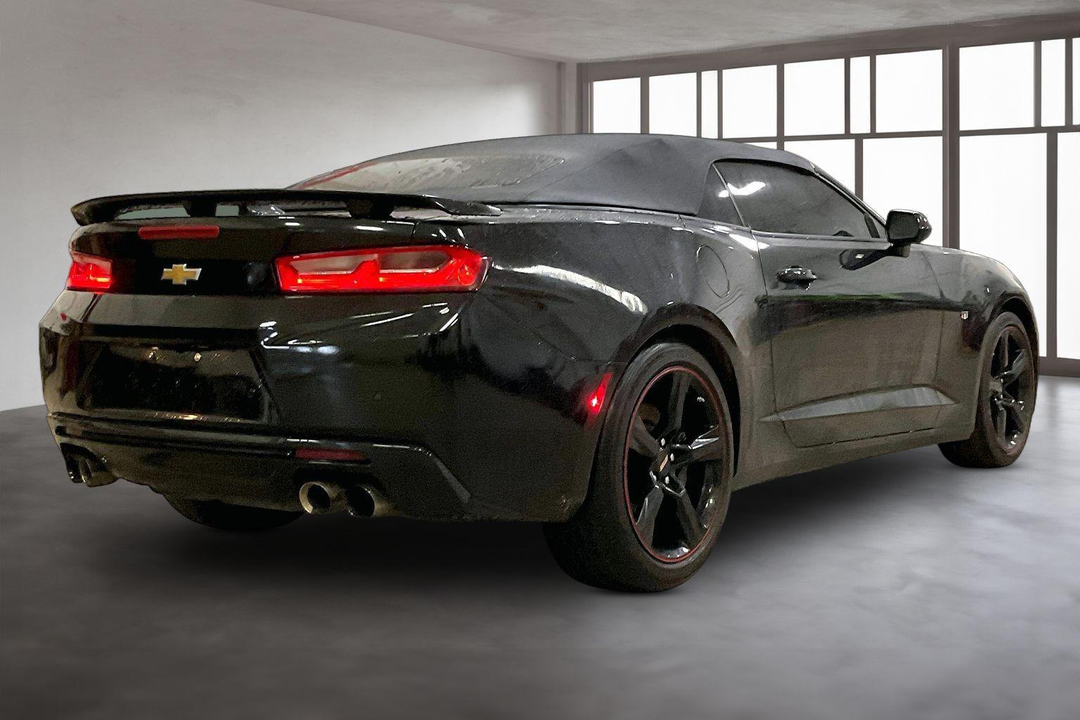 The 2017 Chevrolet Camaro 2dr Conv 2SS in Mosaic Black Metallic is a stunning blend of performance and luxury. Under the hood, it boasts a powerful 6.2L 8-cylinder engine paired with a manual transmission, promising an exhilarating drive with maximum control. The sleek exterior is perfectly complemented by 20" x 8.5" front and 20" x 9.5" rear 5-split spoke bright silver-painted aluminum wheels, providing a striking presence on the road. Inside, the Camaro offers a sophisticated Jet Black interior featuring an array of premium features designed for comfort and convenience. The heads-up display and blind spot monitor enhance safety, while the wireless charging and Bluetooth connectivity keep you seamlessly connected. With heated and ventilated seats, auto climate control, and a premium sound system, you'll enjoy every journey in total comfort.
