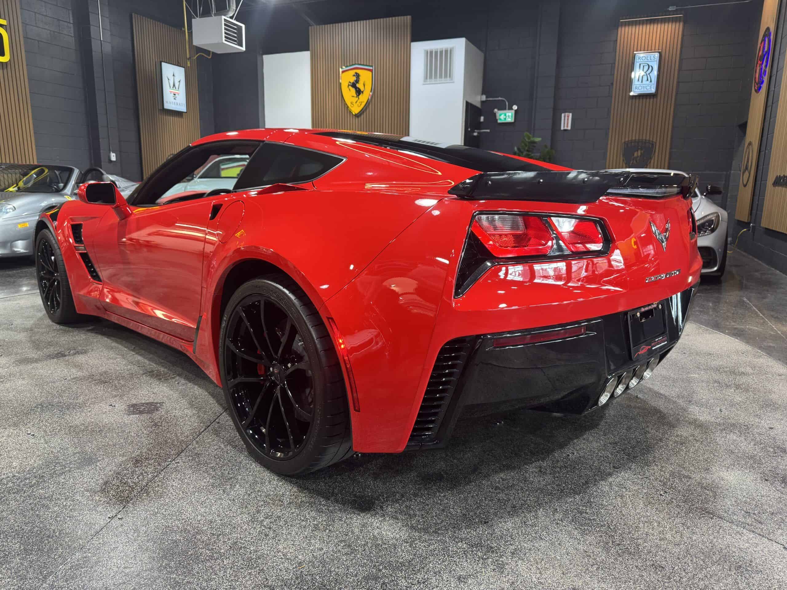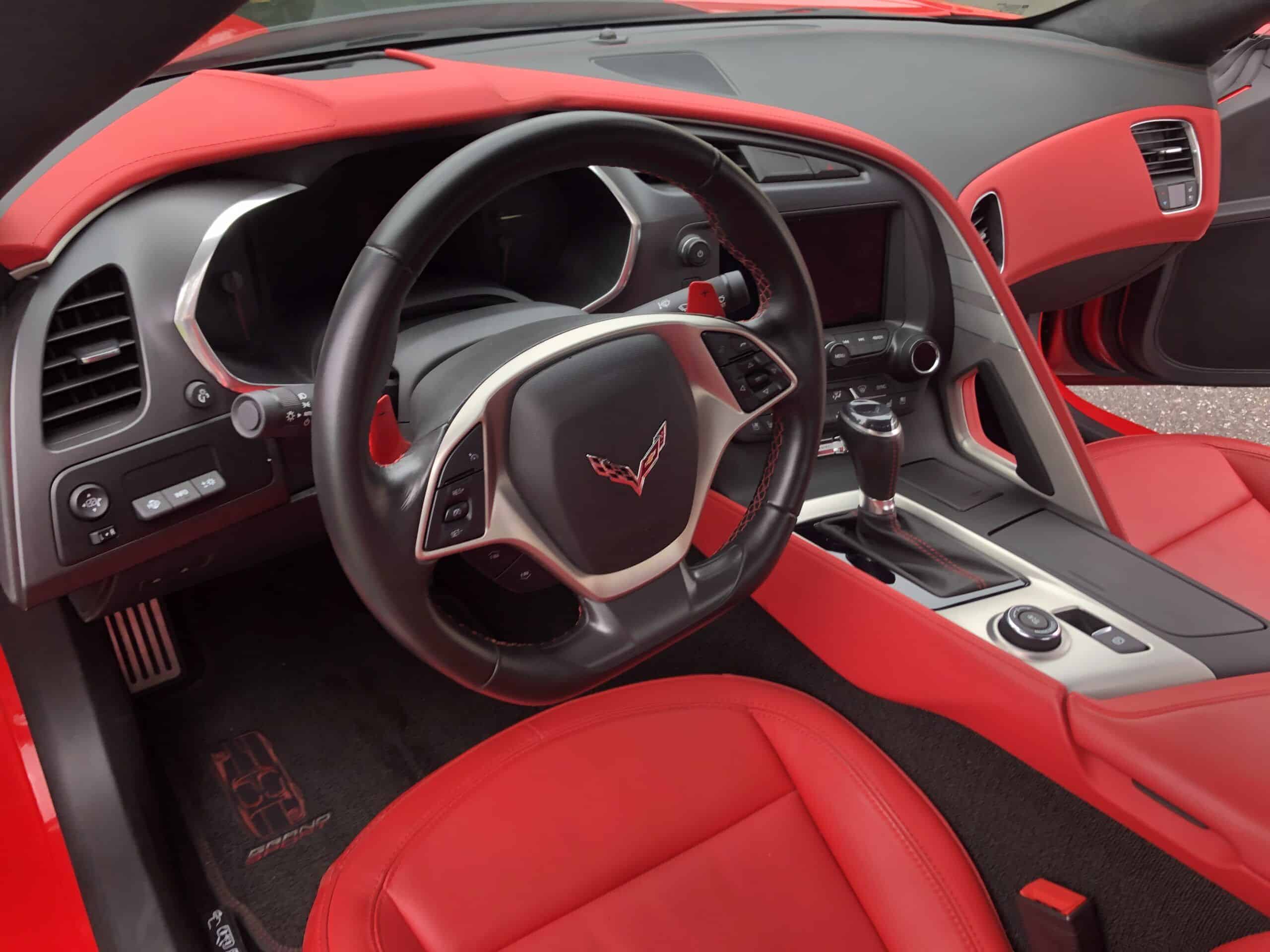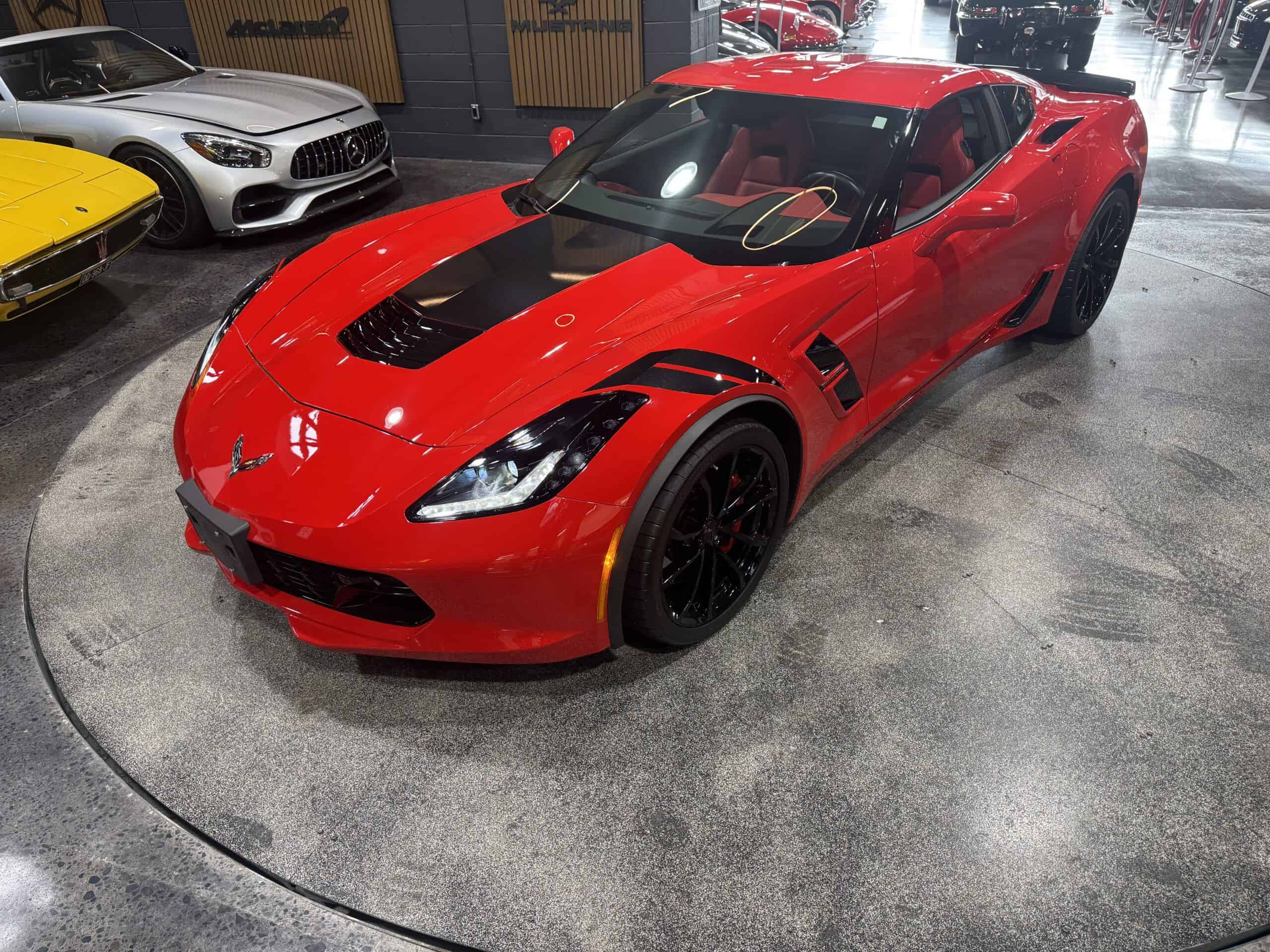 A modern icon with unmistakable heritage, this 2017 Corvette Grand Sport represents the purest expression of American performance design — the perfect balance of power, handling, and presence. Finished in Torch Red over Adrenaline Red leather , this example is a visual knockout and presents in flawless, showroom condition throughout. Under the hood, the 6.2L V8 delivers a commanding 460 horsepower , paired to an 8-speed paddle-shift automatic transmission that offers both effortless cruising and lightning-fast shifts when the road opens up. Performance is further enhanced by Magnetic Ride Control , Grand Sport–specific suspension tuning , and massive Brembo brakes finished with red calipers . The look is completed with gloss black sport wheels , giving the car a striking, aggressive stance. Only 11,000 km — collector-grade condition. This Grand Sport perfectly captures the Corvette’s legendary DNA — wide-body styling, track-honed chassis, and exhilarating performance — yet remains refined and usable every day. A truly exceptional example for the enthusiast or collector seeking a low-kilometre, perfectly presented C7 Corvette in the most desirable color combination.