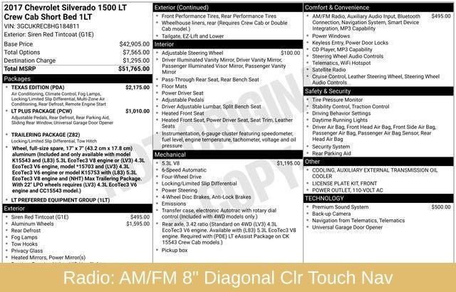 Siren Red Tintcoat 2017 Chevrolet Silverado 1500 LT LT1 EcoTec3 5.3L V8 6-Speed Automatic Electronic with Overdrive 4WD.