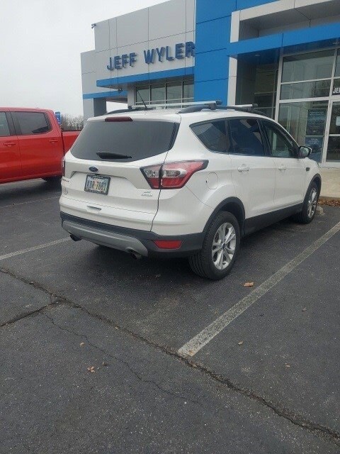 Jeff Wyler Springfield Auto Mall is honored to offer this stunning 2017 Ford Escape SE in White Platinum Clearcoat Metallic. Well equipped with: Equipment Group 201A, SE Leather Comfort Package (10-Way Power Passenger Seat, BLIS w/Cross Traffic Alert, Heated Leather-Trimmed Buckets w/60/40 Rear Seat, and Leather Steering Wheel & Shift Knob), SE Technology Package (110V/150W AC Power Outlet, 9 Speakers, Black Roof-Rack Side Rails, Halogen Projector Headlamps, One-Touch-Up/Down Front & Rear Windows, Reverse Sensing System, SYNC 3 Communications & Entertainment System, and SYNC Connect), 3.21 Axle Ratio, 4-Wheel Disc Brakes, 6 Speakers, ABS brakes, Air Conditioning, Alloy wheels, AM/FM radio: SiriusXM, Automatic temperature control, Brake assist, Bumpers: body-color, CD player, Compass, Delay-off headlights, Driver door bin, Driver vanity mirror, Dual front impact airbags, Dual front side impact airbags, Electronic Stability Control, Emergency communication system: 911 Assist, Exterior Parking Camera Rear, Four wheel independent suspension, Front anti-roll bar, Front Bucket Seats, Front Center Armrest, Front dual zone A/C, Front fog lights, Front reading lights, Fully automatic headlights, Illuminated entry, Knee airbag, Low tire pressure warning, Occupant sensing airbag, Outside temperature display, Overhead airbag, Overhead console, Panic alarm, Passenger door bin, Passenger vanity mirror, Power door mirrors, Power driver seat, Power Heated Sideview Mirrors, Power Liftgate, Power steering, Power windows, Radio data system, Radio: AM/FM Single CD/MP3, Rear anti-roll bar, Rear seat center armrest, Rear window defroster, Rear window wiper, Remote keyless entry, Speed control, Speed-sensing steering, Split folding rear seat, Steering wheel mounted audio controls, SYNC Communications & Entertainment System, Tachometer, Telescoping steering wheel, Tilt steering wheel. Awards: * 2017 KBB.com 10 Best Used Compact SUVs Under $15,000 * 2017 KBB.com 10 Best SUVs Under $25,000 * 2017 KBB.com 10 Most Awarded Brands * 2017 KBB.com Brand Image Awards Reviews: * Optional 2.0-liter turbocharged engine provides quick acceleration; high-tech features include Sync 3 infotainment, Apple CarPlay and Android Auto; responsive steering and carlike handling around turns. Source: EdmundsAsk about available certifications. Used vehicles 10 years of age or newer with less than 100,000 miles are eligible for the Wyler Assurance Program, but eligible vehicles must pass our reconditioning process and multi-point inspection. Provided the vehicle passes inspection, vehicles will be eligible for the 6 month/6,000 mile limited warranty. The 6 month/6,000 mile limited warranty is NOT available on AS-IS vehicles, wholesale vehicles, lease buyback/pass-thru vehicles or un-inspected vehicles. Note that this program can also apply to vehicles where the remaining factory coverage is less than 6 months or 6,000 miles. Please check the Federal Trade Commission (FTC) Buyers guide on the vehicle for full details as to whether or not warranty coverage may apply. Contact Dealer for additional details. The Wyler Assurance 6 month/6,000 Mile limited warranty ends 6 months from the date of the Retail Purchase Agreement (BUYERS ORDER) or when the vehicle's odometer registers 6,000 additional miles to the mileage listed on the BUYERS ORDER, whichever comes first. Your Deductible - The warranty holder on your contract pays the first $100 of each covered repair.