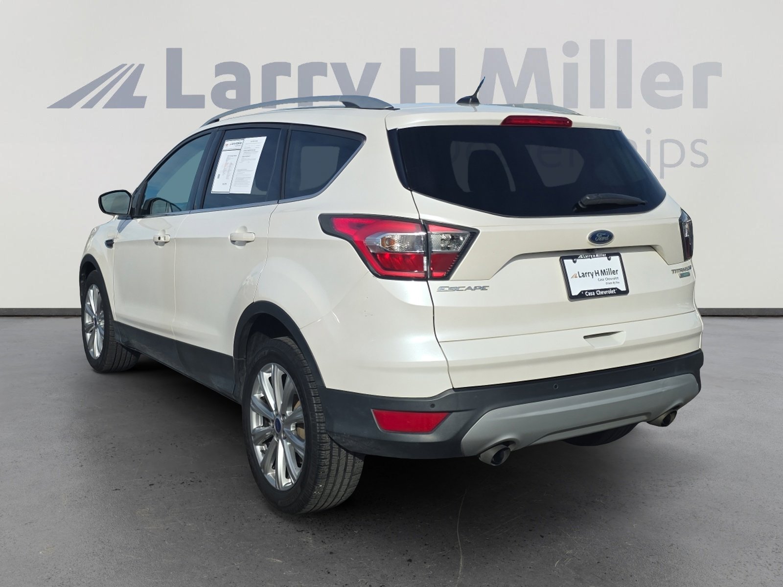 This 2017 White Platinum Clearcoat Metallic Ford Escape Titanium FWD is well equipped and includes these features and benefits. Larry H Miller Casa Chevrolet located on Lomas and Louisiana, just 2 blocks south of I-40. We service metro Albuquerque, South Valley, Rio Rancho, Farmington, Las Cruces, Gallup, Santa Fe, and Surrounding New Mexico cities.