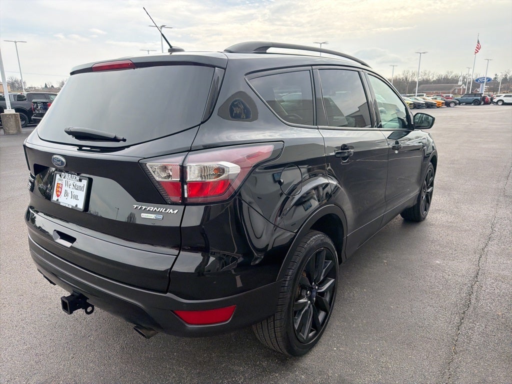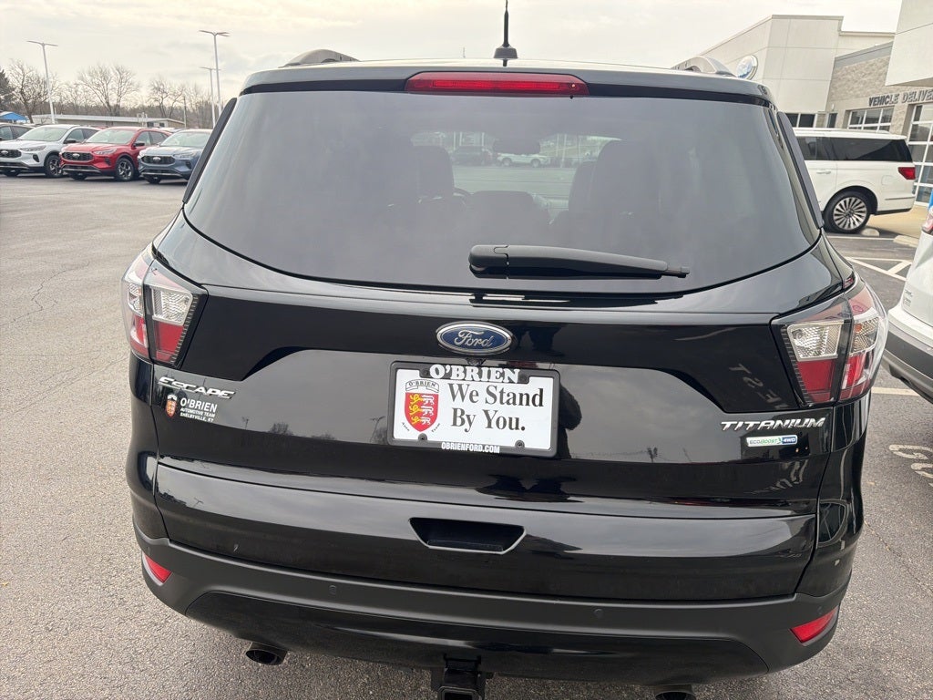 Clean CARFAX. 2017 Ford Escape Titanium EcoBoost 2.0L I4 GTDi DOHC Turbocharged VCT 4D Sport Utility Shadow Black 4WD 6-Speed Automatic 20/27 City/Highway MPG. Odometer is 9633 miles below market average! The O'Brien Ford Pre-Owned Promise Used cars inspected ... reconditioned ... and given our seal of approval. Every used car we sell goes through a comprehensive 72-point inspection with a certified ASE technician. Pre-Owned Vehicles are eligible for extended warranties of up to seven years or 100,000 miles.