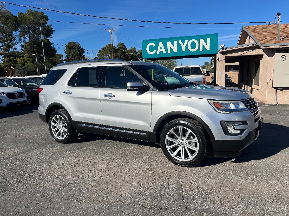 This 2017 Ford Explorer Limited 4x4 stands out with exceptionally low mileage — just 33,000 miles, premium features, and all-weather capability. Powered by a smooth 3.5L V6 and paired with a 6-speed automatic transmission, it delivers confident performance and a comfortable, refined ride. Finished in Ingot Silver Metallic with a black leather interior, this Explorer is well equipped for family use, road trips, and year-round driving. A low-mileage, well-optioned Explorer Limited with 4x4 — a rare and highly desirable combination. Fully serviced, detailed, and Canyon-certified. All vehicles are Certified with an Autocheck vehicle history guarantee. 101 point vehicle inspection on every vehicle. We are committed to providing our customers a safe & reliable vehicle at the right price. No tricks here, all of our reconditioning and repair costs are all ready included in the price of the vehicle. No surprises! No games/no gimmicks/no hassle/no hidden fees/no 'internet fee'. We proudly advertise all our prices, we aren't afraid to publish them, we won't make you call, email, or jump thru hoops just to get a price, who has time for those games? Credit Union Direct Financing Available with low low rates OAC. First Time Buyers Programs Available! Good Credit/Bad Credit/Divorce/Bankruptcy/Short Time Job we can help! OAC. Since 1983 in the same location! If I wouldn't put my wife and 3 daughters in it you better believe it would not be on my lot! It is the customer's sole responsibility to verify the existence and condition of any equipment listed. Neither the dealership nor DealerSync is responsible for misprints on prices or equipment. It is the customer's sole responsibility to verify the accuracy of the prices with the dealer.
