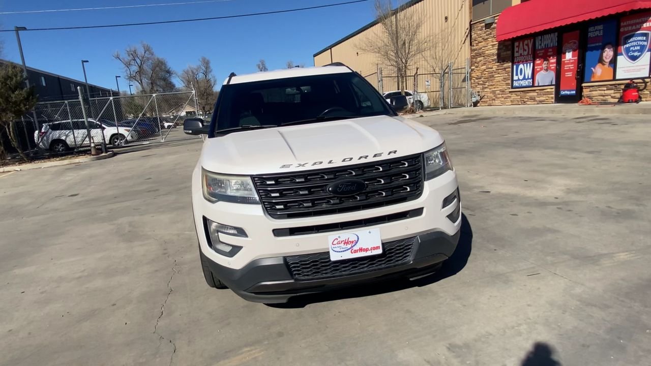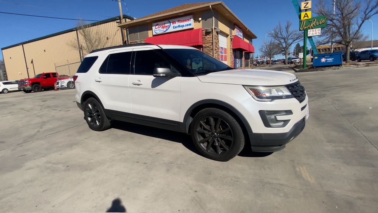 This pre-owned 2017 Ford Explorer XLT is available for sale at CarHop Auto Sales in Colorado Springs. The vehicle features a V6 engine, front-wheel drive, and a comfortable interior with premium cloth seating. The Explorer offers a spacious and comfortable ride for you to the city.