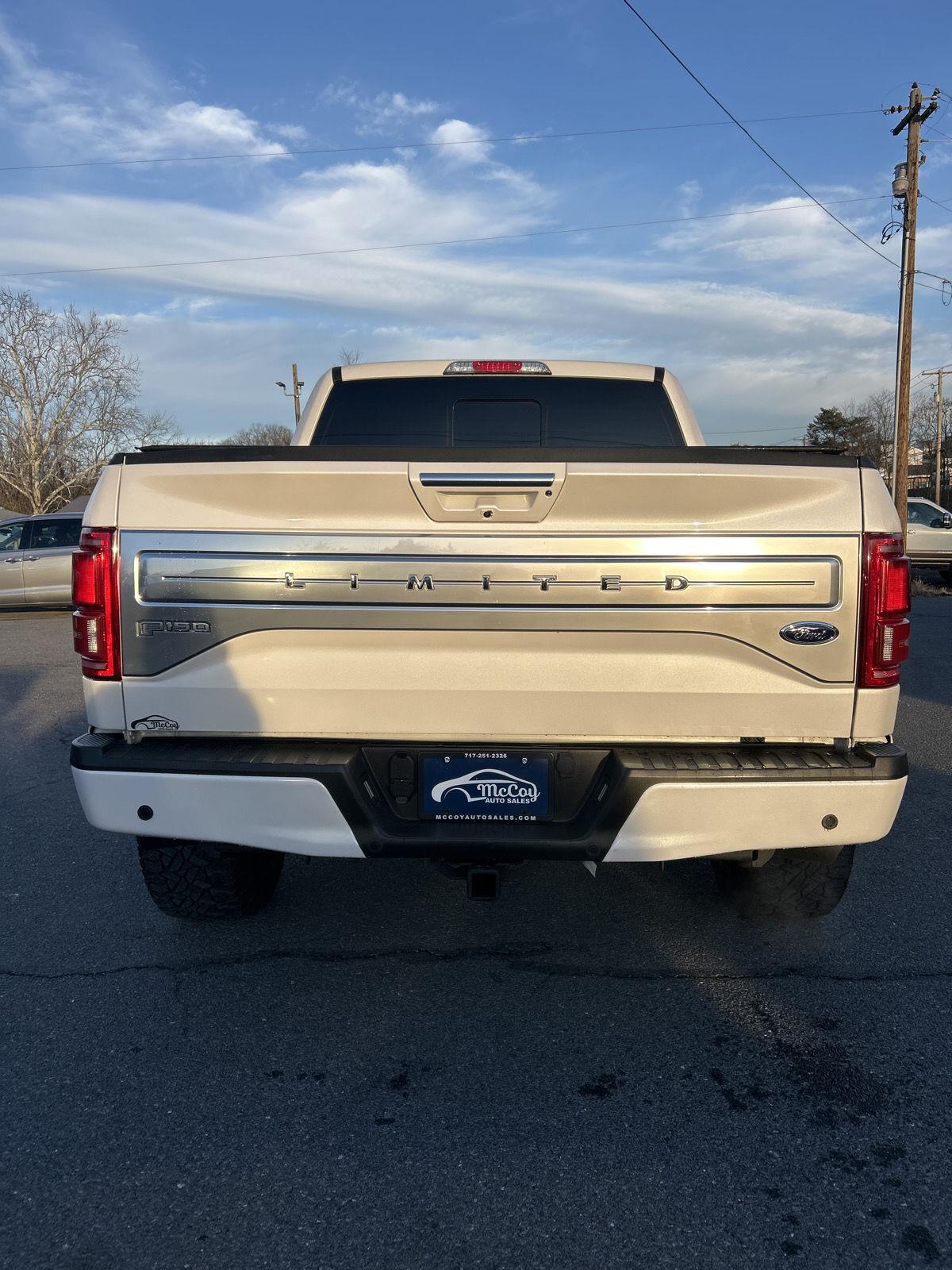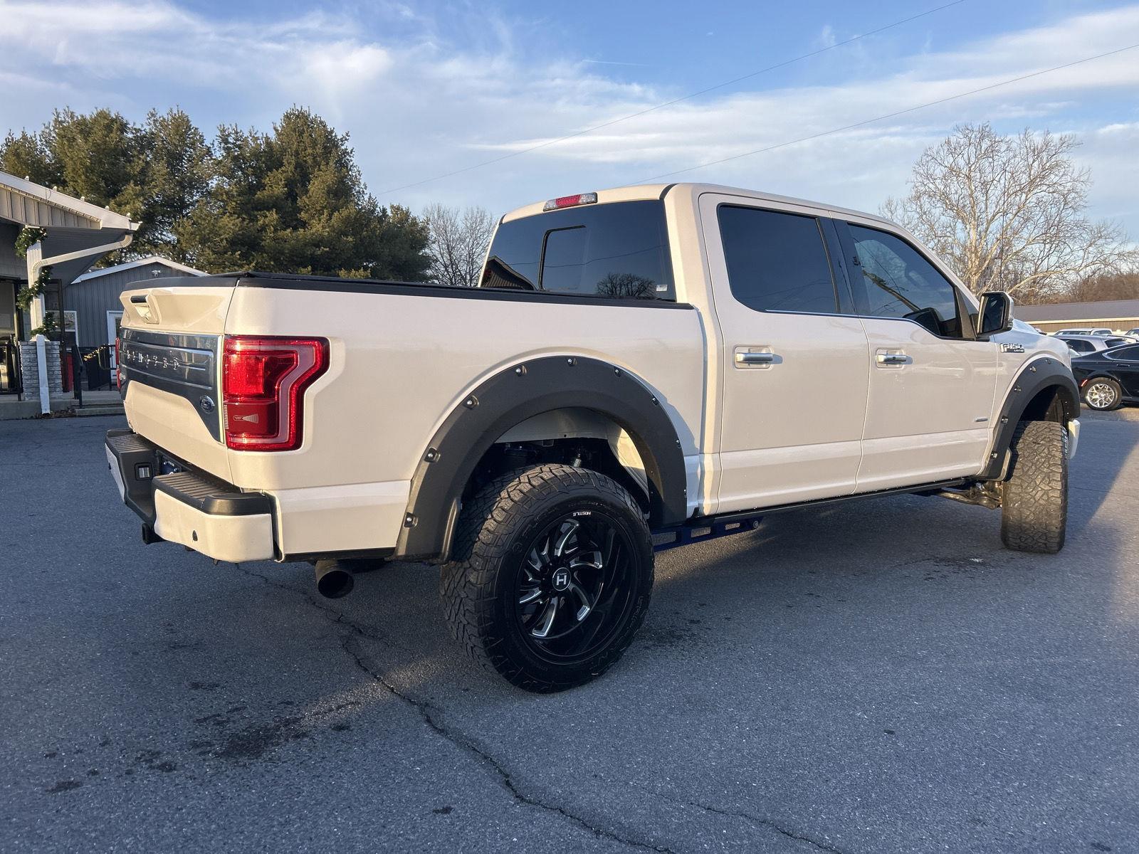 Thanks for checking out McCoy Auto Sales of Chambersburg, Pa. This White Platinum Metallic Tri-Coat 2017 Ford F-150 Limited is the truck to make yours before someone else does! This gorgeous white Limited comes with a 3.5L V6 EcoBoost twin turbo engine and 10 speed automatic along with 4 wheel drive! It has a lift with rear traction bars and Hostile Demon wheels with off-road tires! The inside is stunning with two-tone leather, heated / power seats, and nice accents throughout! You get keyless entry and remote start, bluetooth wireless, GPS navigation, tonneau cover, a swing-out bed storage box, and more! This is a local trade with no accidents and would be a great addition to your garage!