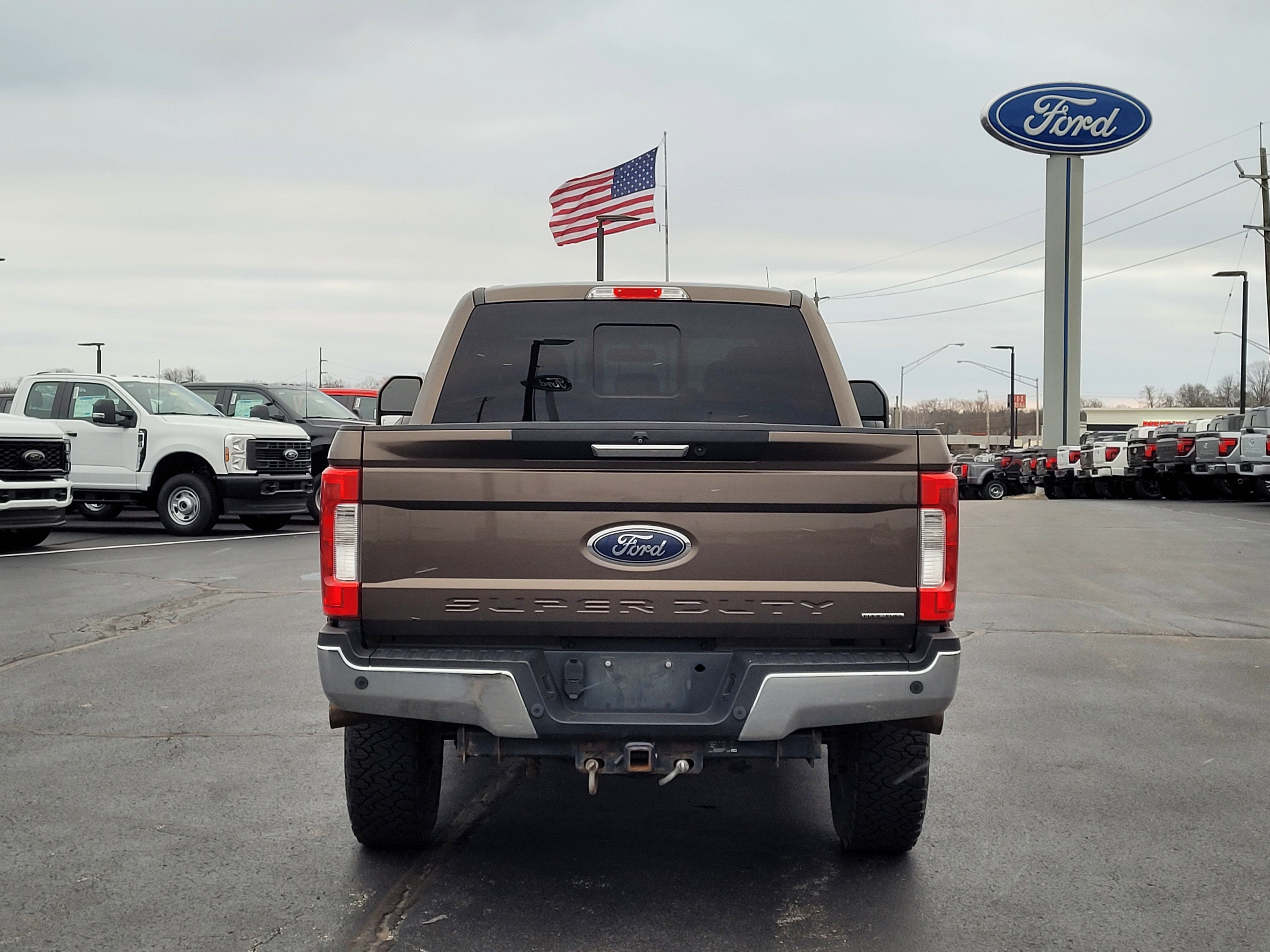 Recent Arrival! Experience the power and capability of this 2017 Ford F-250 SuperDuty Lariat 4D Crew Cab 4WD in eye-catching Caribou Metallic. Equipped with a 6.2L V8 Flex Fuel engine paired with a 6-speed automatic transmission, this truck delivers exceptional towing and hauling performance while handling any terrain with confidence. The Lariat trim offers a luxurious leather interior with 40/20/40 split bench seating, memory power-adjustable pedals, heated and cooled driver and passenger seats with memory, and a twin-panel power moonroof for an elevated driving experience. The cabin also includes SYNC 3 with premium Sony audio, Bluetooth®, rear parking sensors, and an exterior parking camera to keep you connected and in control. Designed for serious off-road and utility performance, this F-250 comes with the FX4 Off-Road Package, 6 angular chrome step bars, PowerScope trailer tow mirrors with memory, hill descent control, and a 10,000 lb GVWR payload package. Exterior upgrades include chrome accents, unique FX4 box decal, LED box lighting, and 18 Chrome PVD aluminum wheels. Safety features include dual front and side airbags, electronic stability control, traction control, and lane departure alerts. This vehicle is sold as-is with no warranty, but has passed a thorough safety inspection, giving you confidence in your purchase.