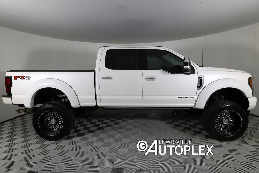 CARFAX One-Owner. Pre-Qualify for Low Finance Rate & 100k Mile Extended Service Plan, 90 Day/3k Mile Limited Warranty, Free Clean CARFAX Report, Autoplex No Haggle Price! 2017 Ford F-250SD Platinum CUSTOM. This Ford Features: Custom Kelderman Air Suspension Lift Kit, Fox Shocks & Steering Stabilizer, 22" American Force Wheels, BF Goodrich All-Terrain Tires - 37X13.50R22LT, Custom Kelderman Grille, Power Retracting Bed Cover, Cargo Glide Bed Mounted Slide Out, Platinum Ultimate Package, Panoramic Moonroof, Navigation, Rear Backup Camera, Blind Spot Monitor, Lane Keep Assist, Adaptive Cruise Control, Bluetooth, Satellite Radio, White Platinum Metallic Tri-Coat Exterior, Black Platinum Edition Leather Seats, Heated & Ventilated Front Seats, Heated Steering Wheel, 4-Wheel Drive, Auto Transmission, Power Stroke 6.7L V8 DI 32V OHV Turbodiesel Engine. Recent Arrival! Odometer is 60878 miles below market average! We perform a quality 125-pt inspection, which means that your Pre-Owned vehicle will be in Top Condition when You Drive it Home. We are a CarFax Advantage Dealer, committed to offering CarFax reports with every used car we sell. Stop shopping and start driving! Our Internet Special is Priced to Move Fast---so act quickly! Financing available in all 50 states! Located ten minutes north of DFW Airport and Downtown Dallas off I-35. Check us out at LewisvilleAutoplex.com.