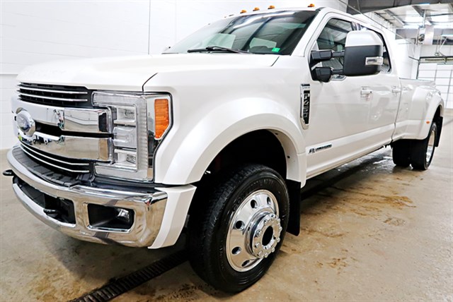 2017 Ford F-450 SD Lariat Crew Cab DRW 4WD with a clean Carfax. Features a 6.7L Power Stroke V8 Diesel engine and 6-speed automatic transmission. Includes a range of premium options like a moonroof, navigation, and heated front seats.