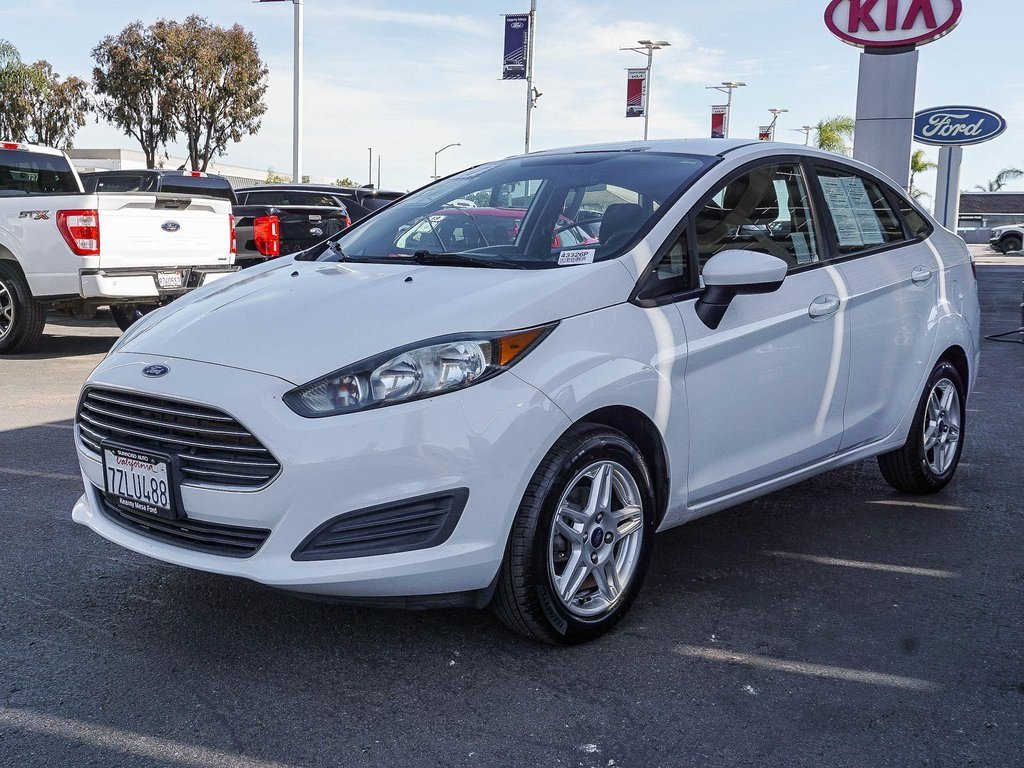Buy with confidence from Kearny Mesa Ford and KIA. 2017 Ford Fiesta Oxford White SE Prior Rental, Fiesta SE, 4D Sedan, 1.6L I4 Ti-VCT, 6-Speed Automatic, FWD, Oxford White, Black Cloth, 6 Speakers, ABS brakes, Air Conditioning, Alloy wheels, AM/FM radio, Bumpers: body-color, CD player, Compass, Delay-off headlights, Driver door bin, Driver vanity mirror, Dual front impact airbags, Dual front side impact airbags, Electronic Stability Control, Emergency communication system: 911 Assist, Equipment Group 200A, Front anti-roll bar, Front Bucket Seats, Front Center Armrest, Front License Plate Bracket, Front reading lights, Front wheel independent suspension, Fully automatic headlights, Illuminated entry, Knee airbag, Low tire pressure warning, Occupant sensing airbag, Outside temperature display, Overhead airbag, Overhead console, Passenger door bin, Passenger vanity mirror, Power door mirrors, Power steering, Power windows, Radio data system, Radio: AM/FM Stereo/CD Player/MP3 Capable, Rear reading lights, Rear window defroster, Remote keyless entry, Security system, Speed control, Speed-sensing steering, Split folding rear seat, Steering wheel mounted audio controls, SYNC Communications & Entertainment System, Tachometer, Telescoping steering wheel, Tilt steering wheel, Traction control, Trip computer, Unique Cloth Front Bucket Seats, Variably intermittent wipers, Wheels: 15" Sparkle Silver Painted Aluminum. 27/37 City/Highway MPG Clean CARFAX.