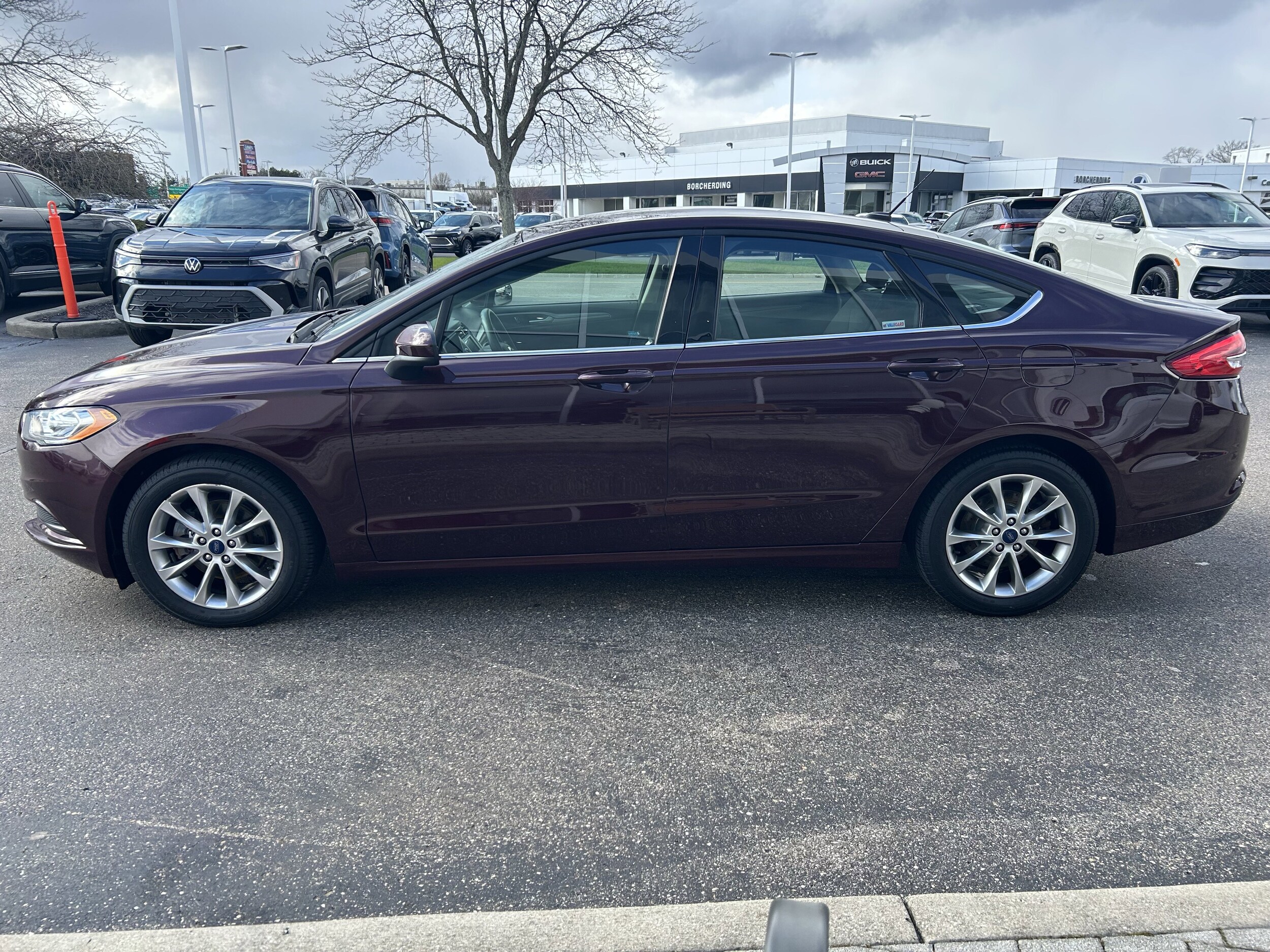 Recent Arrival! New Price! Burgundy Velvet Metallic Tinted Clearcoat 2017 Ford Fusion SE 2.5L iVCT FWD. Local Trade, Non Smoker, Hard to Find, 6-Speed Automatic, Dual-Zone Electronic Automatic Temperature Control, Fusion SE Technology Package, SYNC 3 Communications & Entertainment System. All vehicles are subject to prior sale. Price does not include applicable tax, title, license, and a $398.00 documentation fee or other fees required by law, lending institutions, and/or lessors. Vehicles shown at different locations are not currently in our inventory (not in stock) but can be made available at our location within a reasonable time after your request. The payment information provided here is not a commitment by any organization to provide credit, leases or other programs.