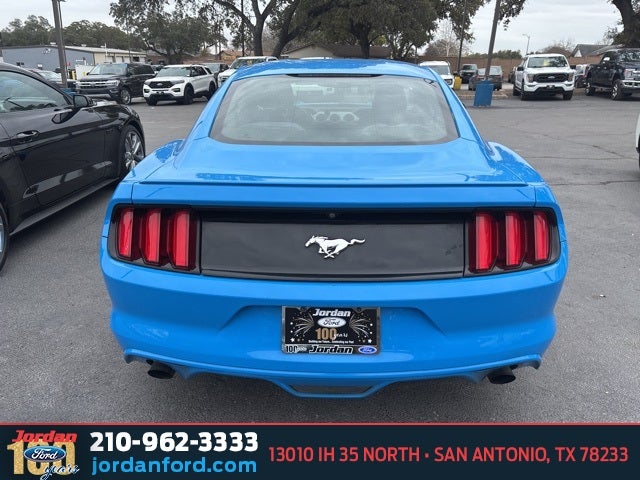 Recent Arrival! Odometer is 32058 miles below market average! 21/30 City/Highway MPG Grabber Blue 2017 Ford Mustang EcoBoost RWD EcoBoost 2.3L I4 GTDi DOHC Turbocharged VCT 6-Speed Automatic with Select-Shift. Call (888) 721-5874 with any questions or to schedule a test drive! Jordan Ford has proudly served drivers in San Antonio, Texas, and surrounding areas like New Braunfels, Boerne, and Schertz for over 100 years. Since 1919, we’ve been dedicated to providing a simple, transparent car-buying experience with our Simple, Easy Menu Pricing—no hidden fees or surprises. Visit Jordan Ford, conveniently located at 13010 IH 35 North, San Antonio, TX 78233, to shop new Ford vehicles, quality used cars, or schedule expert Ford service today!