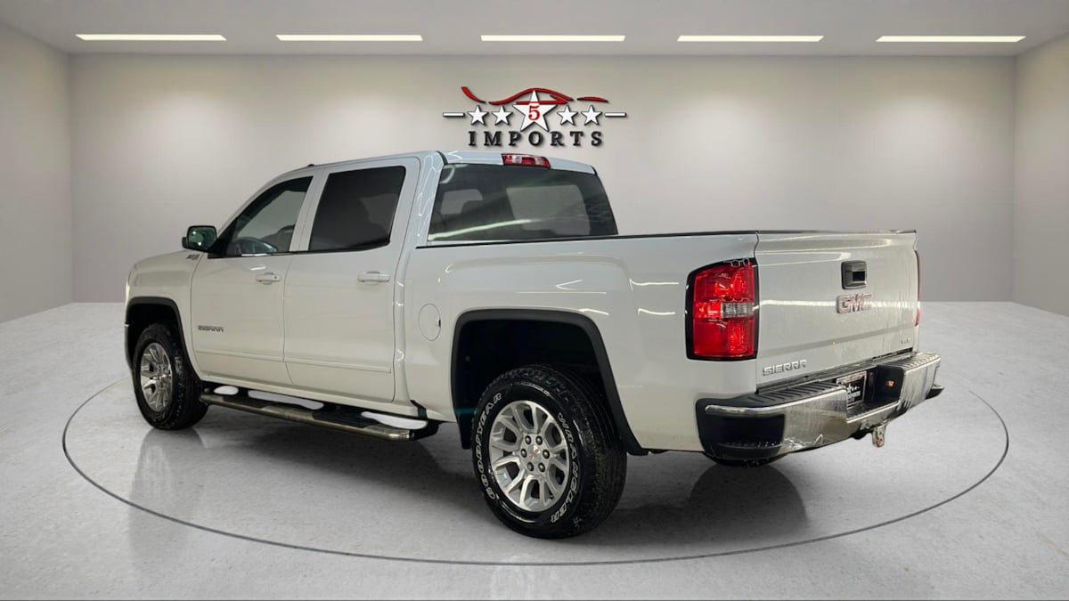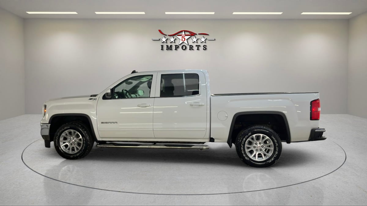 Climb inside our One Owner 2017 GMC Sierra 1500 SLE Crew Cab 4X4 that makes a powerful first impression in Summit White! Motivated by a 5.3 Liter EcoTec3 V8 that offers 355hp paired with a 6 Speed Automatic transmission. Our Four Wheel Drive truck is up to help you take on your day with ease and rewards you with nearly 22mpg on the highway. Perfectly rugged with bold, brawny good looks, our Sierra SLE has a front chrome bumper, a rear chrome bumper CornerStep feature, running boards, a bed liner, an EZ lift/lower remote locking tailgate, and tinted glass. The SLE interior has everything you need correctly in place and sets the stage for a fantastic ride with easy-to-use knobs and buttons. You'll appreciate supportive seats, air conditioning, cruise control, a driver information center, power windows/locks, and a Color-touch radio with IntelliLink. Our GMC performs well in safety tests and provides peace of mind with StabiliTrak featuring trailer sway control and hill start assist. You'll also drive assured with a rearview camera, tire pressure monitoring system, daytime running lamps, many airbags, and an available Teen Driver configurable feature. Our Sierra 1500 SLE is setting the truck standard, and we're confident you'll be impressed with just one drive! Save this Page and Call for Availability. We Know You Will Enjoy Your 5 Star Imports Test Drive Towards Ownership!