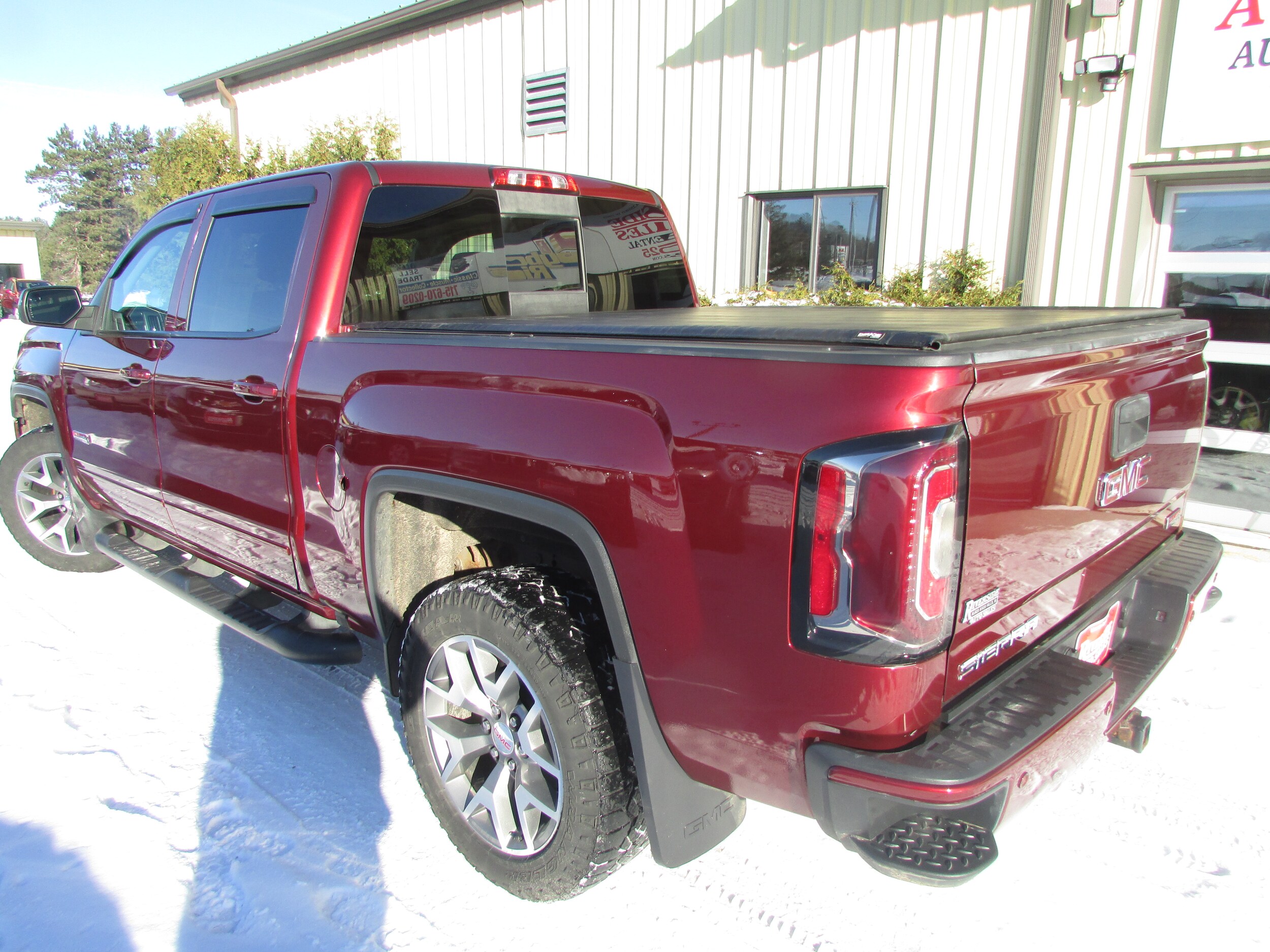 2017 GMC Sierra SLT Crew Cab All Terrain 4X4, crimson red with heated ebony seats. This is a one owner with mileage at 199010. You would never know it by the looks. It is fully equipped along with a power moon. Powered by a 6.2 V-8 that was replaced at 155,000 miles. We have all the service records. It also has a roll up tonneau cover. This good looking truck can be purchased for only 17999.00. Phone 715-284-4525.