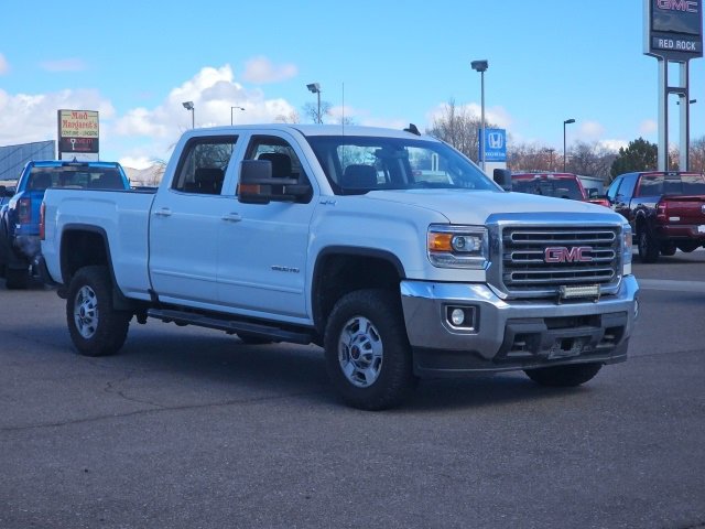Recent Arrival! Red Rock GMC proudly offers this 2017 GMC Sierra 2500HD SLE 4WD in White. It comes well equipped with these standard and optional features. Sierra 2500HD SLE, 4D Crew Cab, Vortec 6.0L V8 SFI Flex Fuel VVT, 6-Speed Automatic HD Electronic with Overdrive, 4WD, White, Dark Ash/Jet Black w/Cloth Seat Trim.