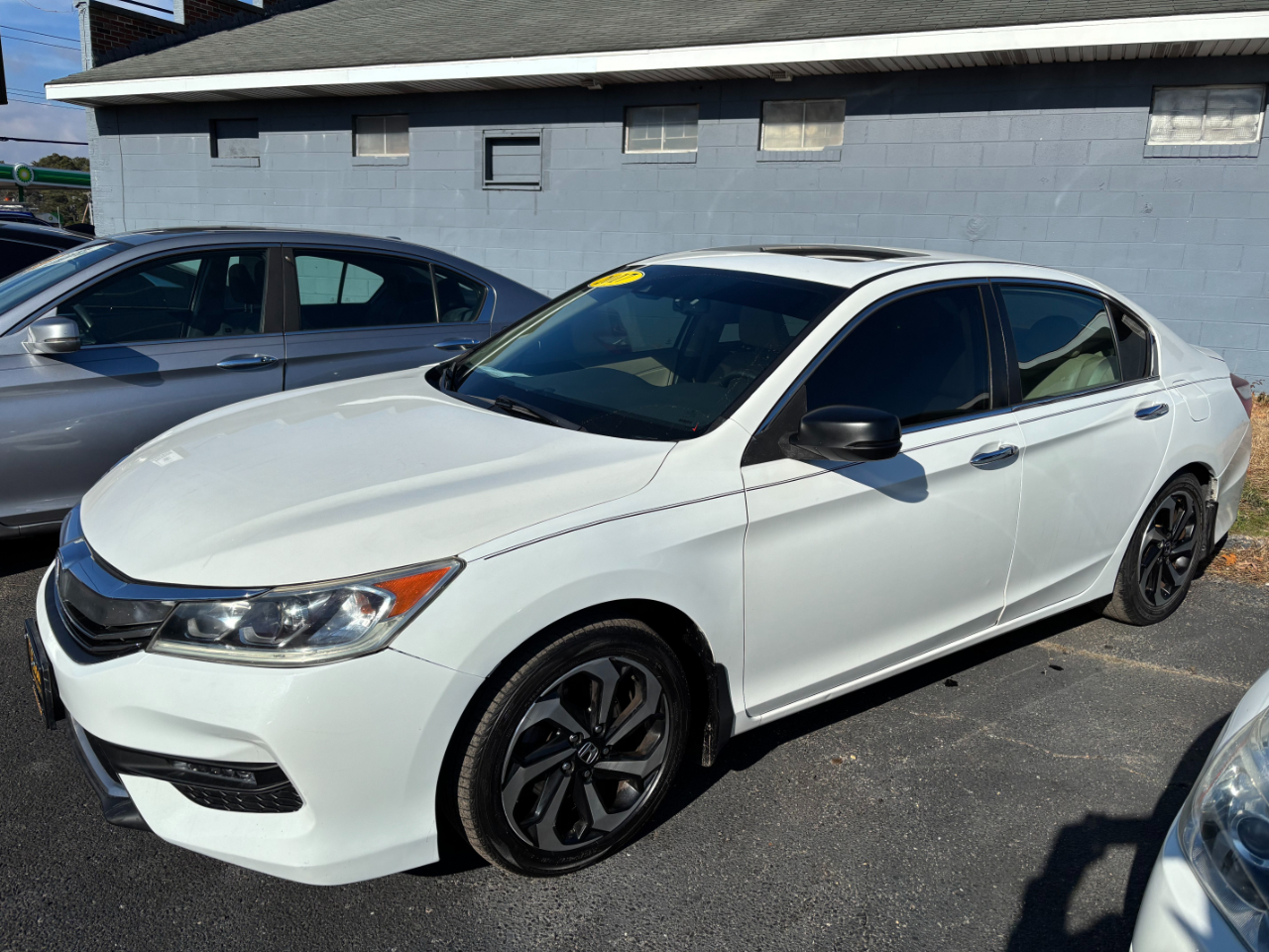 Get ready to turn heads in this sleek and stylish White 2017 Honda Accord! This beauty comes fully equipped with everything you need for a smooth and safe ride, from ABS brakes to traction control and vehicle stability control system. You can rest easy knowing that this car has plenty of safety features, including front and side airbags, as well as side head curtain airbags to keep you and your passengers protected. Hop in and enjoy the luxurious leather seats, front heated seats, and power sunroof for a comfortable and enjoyable driving experience. Easily navigate your way with the built-in navigation aid and stay connected with the voice-activated telephone feature. Crank up the tunes with the AM/FM radio and subwoofer, and let the Telematics system keep you informed on the go. With alloy wheels, fog lights, and daytime running lights, this Honda Accord not only looks good but also provides great visibility on the road. And don't forget, a Carfax report is available for this car, so you can purchase with peace of mind. Don't miss out on this fantastic ride!