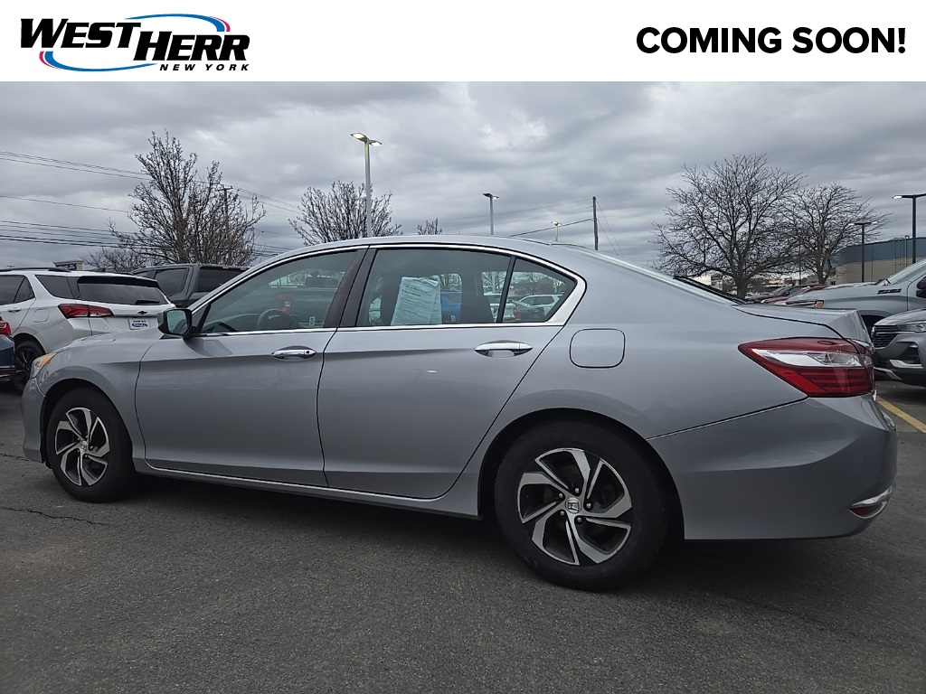 Recent Arrival! 2017 Honda Accord LX Lunar Silver Metallic CVT FWD. Accord LX, 4D Sedan, 2.4L I4 DOHC i-VTEC 16V, CVT, FWD, Lunar Silver Metallic, Black w/Cloth Seat Trim, AM/FM radio, Front dual zone A/C, Overhead airbag, Power door mirrors, Power windows, Radio data system, Telescoping steering wheel, Traction control. 27/36 City/Highway MPG. Coming Soon! This West Herr pre-owned vehicle has recently been acquired and we are currently processing the paperwork, servicing the vehicle, and taking more photos. It will be available for sale and delivery shortly. See a store manager for specific details on the current status. IMPORTANT RECALL INFORMATION. Some vehicles may be subject to unrepaired safety recalls. Go to www.safercar.gov to learn whether an individual vehicle is subject to an open recall.