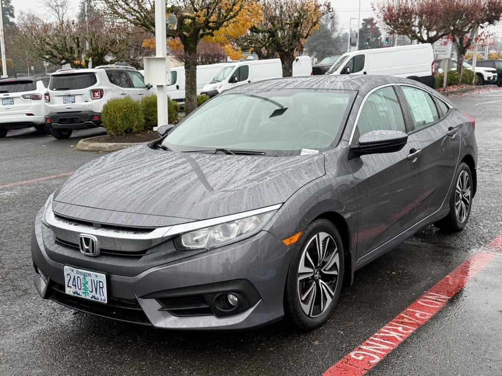 CARFAX One-Owner. 2017 Honda Civic EX-L 1.5L I-4 DI DOHC Turbocharged CVT FWD 4D Sedan Polished Metal Metallic 17" Alloy Wheels, 4-Wheel Disc Brakes, 8 Speakers, ABS brakes, Air Conditioning, AM/FM radio: SiriusXM, Apple CarPlay/Android Auto, Auto-dimming Rear-View mirror, Automatic temperature control, Brake assist, Bumpers: body-color, Compass, Custom Fuel Wheels and Off-Road Tires, Delay-off headlights, Driver door bin, Driver vanity mirror, Dual front impact airbags, Dual front side impact airbags, Electronic Stability Control, Emergency communication system, Exterior Parking Camera Rear, Four wheel independent suspension, Front anti-roll bar, Front Bucket Seats, Front Center Armrest, Front dual zone A/C, Front fog lights, Front reading lights, Fully automatic headlights, Heated door mirrors, Heated front seats, Illuminated entry, Leather Seat Trim, Leather Shift Knob, Low tire pressure warning, Occupant sensing airbag, Outside temperature display, Overhead airbag, Panic alarm, Passenger door bin, Passenger vanity mirror, Power door mirrors, Power driver seat, Power moonroof, Power steering, Power windows, Radio data system, Radio: 180-Watt AM/FM/HD/SiriusXM Audio System, Rear anti-roll bar, Rear seat center armrest, Rear window defroster, Reclining Heated Front Bucket Seats, Remote keyless entry, Security system, Speed control, Speed-sensing steering, Speed-Sensitive Wipers, Split folding rear seat, Spoiler, Steering wheel mounted audio controls, Tachometer, Telescoping steering wheel, Tilt steering wheel, Traction control, Trip computer, Variably intermittent wipers. Come in to Ron Tonkin Chrysler Jeep Dodge Ram Fiat in Milwaukie to test drive today! DL0087.