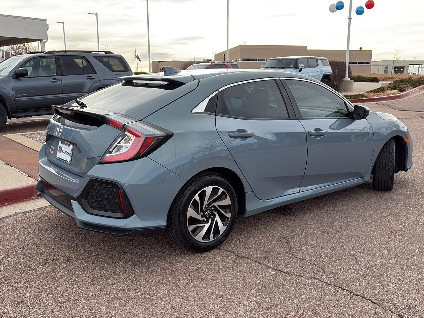 This 2017 Honda Civic Hatchback LX has a Sonic Gray Pearl exterior and Black interior color with only 73,948 miles. Stock Number H223090. You can connect with us by calling (719) 602-1677. One Owner! At Mike Maroone Honda, we're here to Serve you! Our staff is 100% dedicated to customer satisfaction and we understand that you need clear, transparent information throughout the car buying process. With our live market pricing philosophy, we offer the right cars at the right price, and the transparency to back it up!