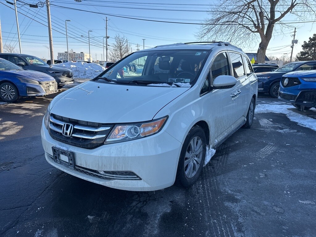White Diamond Pearl 2017 Honda Odyssey EX-L FWD 6-Speed Automatic 3.5L V6 SOHC i-VTEC 24V 3rd row seats: split-bench, Auto-dimming Rear-View mirror, Brake assist, Driver's Seat Mounted Armrest, Exterior Parking Camera Rear, Front Bucket Seats, Heated door mirrors, Heated Front Bucket Seats, Power door mirrors, Power driver seat, Power Liftgate, Power moonroof, Power passenger seat, Power steering, Reclining 3rd row seat, Steering wheel mounted audio controls. Recent Arrival! 19/27 City/Highway MPG Awards: * 2017 KBB.com 12 Best Family Cars * 2017 KBB.com 10 Most Awarded Brands * 2017 KBB.com Brand Image Awards Kelley Blue Book Brand Image Awards are based on the Brand Watch(tm) study from Kelley Blue Book Market Intelligence. Award calculated among non-luxury shoppers. For more information, visit www.kbb.com. Kelley Blue Book is a registered trademark of Kelley Blue Book Co., Inc. Reviews: * Should continue to deliver excellent ride and handling characteristics for a minivan; Honda often introduces unique new features with each redesign of the Odyssey; will likely offer improved fuel economy without sacrificing size. Source: Edmunds IMPORTANT RECALL INFORMATION. Some vehicles may be subject to unrepaired safety recalls. Go to www.safercar.gov to learn whether an individual vehicle is subject to an open recall.