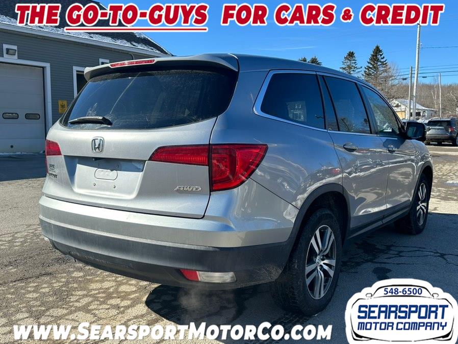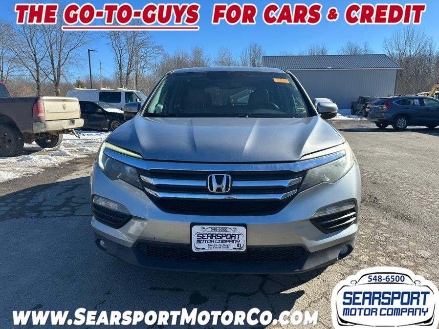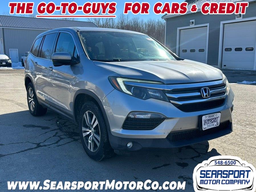 2017 Honda Pilot EX-L w/Navigation AWD, available for sale in Searsport, Maine. This vehicle features a 3.5 V6 Cylinder Engine and is equipped with all wheel drive. The exterior is Lunar Silver Metallic and the interior is Gray. The Pilot offers a comfortable ride with seating for up to eight, a power liftgate, and a range of technology features. Please confirm the accuracy of the specifications provided above with the dealer's representative.