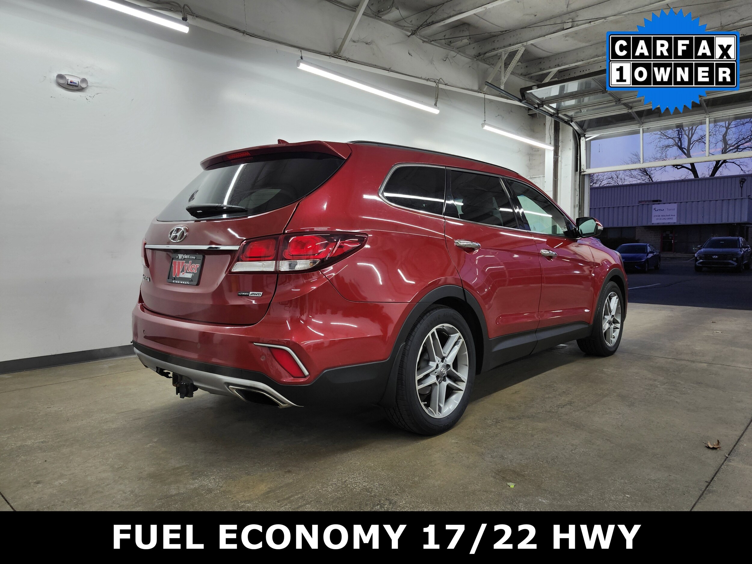 Jeff Wyler Superior Hyundai is proud to offer this great 2017 Hyundai Santa Fe SE Ultimate in Regal Red Pearl. Well equipped with: SE Ultimate Tech Package 03, AWD, Beige Leather, 12 Speakers, 19" x 7.5J Aluminum Alloy Wheels, 3rd row seats: split-bench, and more. CARFAX One-Owner. This sales price excludes tax, title, and dealer fees. Used vehicles 10 years of age or newer with less than 100,000 miles are eligible for the Wyler Assurance Program, but eligible vehicles must pass our reconditioning process and multi-point inspection. Provided the vehicle passes inspection, vehicles will be eligible for the 6 month/6,000 mile limited warranty. The 6 month/6,000 mile limited warranty is NOT available on AS-IS vehicles, wholesale vehicles, lease buyback/pass-thru vehicles or un-inspected vehicles. Note that this program can also apply to vehicles where the remaining factory coverage is less than 6 months or 6,000 miles. Please check the Federal Trade Commission (FTC) Buyers guide on the vehicle for full details as to whether or not warranty coverage may apply. Contact Dealer for additional details.