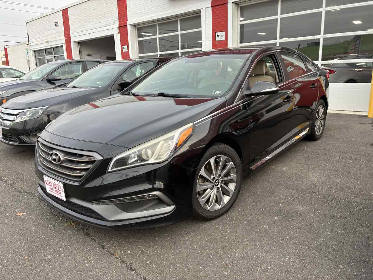 Our 2017 Hyundai Sonata Sport Sedan in Phantom Black checks all the boxes on your list! Powered by a 2.4 Liter 4 Cylinder that offers 185hp connected to a 6 Speed Automatic transmission. This Front Wheel Drive sedan executes precisely to provide confident and responsive handling and nearly 36mpg on the highway. Immediately eye-catching and altogether irresistible, our Sonata Sport is sculpted to aerodynamic perfection and is enhanced with beautiful alloy wheels, side rocker panels with chrome molding, LED daytime running lights, and a sporty front grille, chrome-tipped dual exhaust, and solar control glass. Our Sport cabin features class-leading space with heated front seats featuring an 8-way power-adjustable driver seat with lumbar support, power windows/locks, 60/40 split fold-down rear seatback, and steering-wheel-mounted audio/Bluetooth®/cruise controls. You'll also appreciate an AM/FM with an available SiriusXM/CD/MP3 audio system with a prominent touchscreen and Apple CarPlay®/Android Auto®. Our Hyundai keeps you out of harm's way with ABS, stability/traction control, and advanced airbags. Get behind the wheel to experience the superb craftsmanship of this premium Sonata Sport sedan! Save this Page and Call for Availability. We Know You Will Enjoy Your City Select Auto Sales Test Drive Towards Ownership!