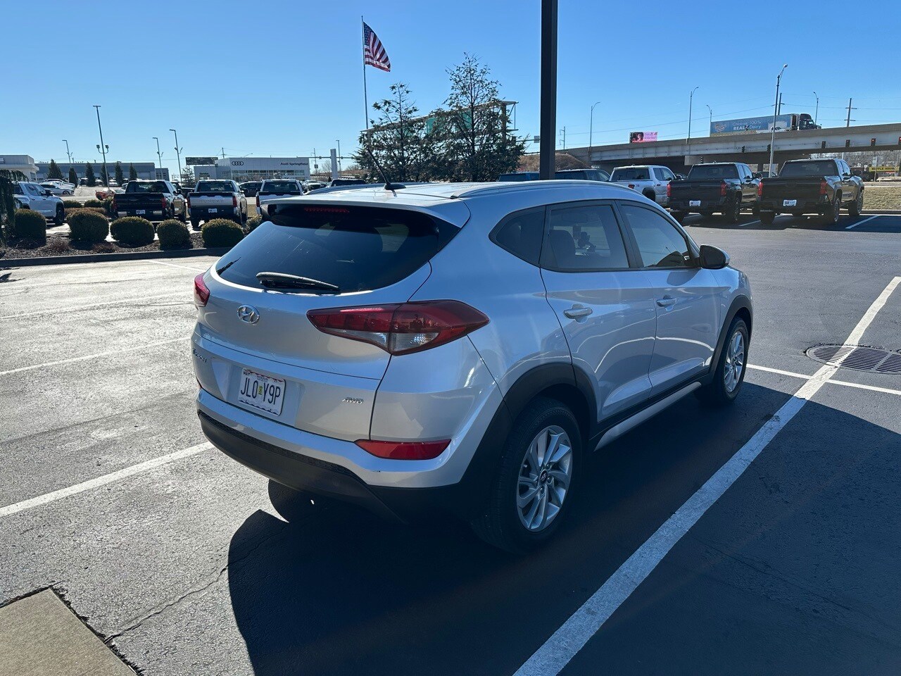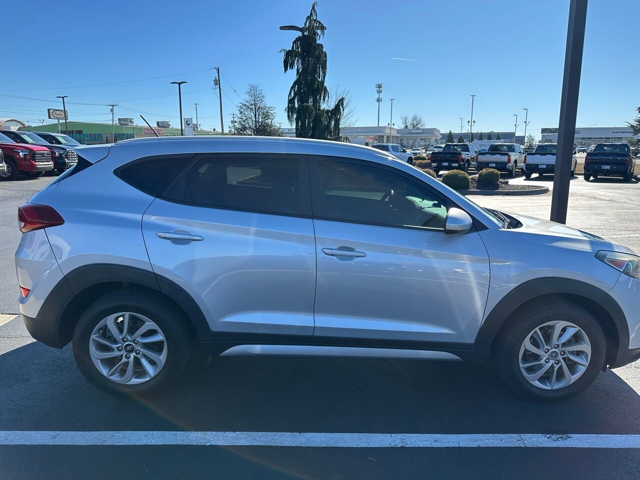 Driver Power Window w/Auto Up/Down, Dual Illuminated Vanity Mirrors, Fog Lamps, Front Seats w/Power Driver's Seat, Illuminated Glove Box, LED Daytime Running Lights, LED Headlight Accents (Positioning Lights), Option Group 02, Premium Side Sills, Roof Rack Side Rails, SE Popular Package 02. Recent Arrival! 2017 Hyundai Tucson SE Molten Silver 4D Sport Utility 2.0L DOHC 6-Speed Automatic with Shiftronic AWD 21/26 City/Highway MPG