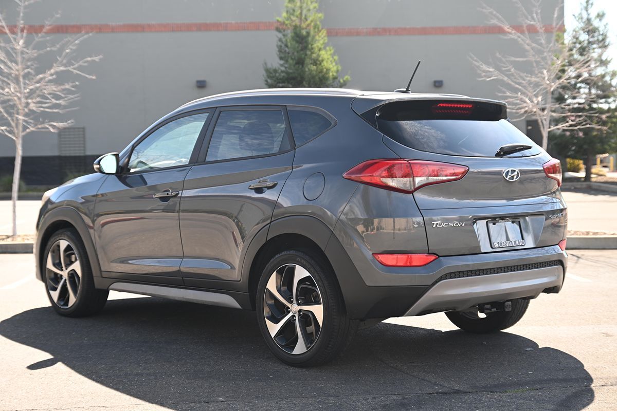 The 2017 Hyundai Tucson Sport FWD is a versatile and stylish SUV, perfect for those who value both aesthetics and functionality. Its exterior, painted in a distinguished Coliseum Gray, exudes sophistication and contemporary appeal. The sleek lines and modern design of the Tucson are complemented by its bold stance, making it a standout choice for urban driving or weekend excursions. Inside, the Tucson doesn't compromise on comfort or style, with Black Yes Essentials cloth seat trim providing a durable and stain-resistant environment. The thoughtfully designed cabin offers ample space for passengers, along with convenient features like carpeted floor mats and a cargo tray to keep your interior tidy. A cargo net further enhances its practicality, ensuring your belongings stay secure during travel. The Tucson’s interior strikes a perfect balance between comfort and versatility, suitable for both daily commutes and longer journeys. Under the hood, the Tucson Sport FWD boasts a 1.6L 4-cylinder engine, promising a balance of power and efficiency for a variety of driving conditions. The Sport trim also includes a tow hitch, augmenting its versatility by offering additional capability for hauling bikes, small trailers, or other equipment. Whether you're navigating city streets or exploring unknown trails, this Tucson is equipped to handle it all. Its blend of style, comfort, and performance makes the 2017 Hyundai Tucson Sport FWD a commendable choice for anyone looking for a reliable and well-rounded SUV.