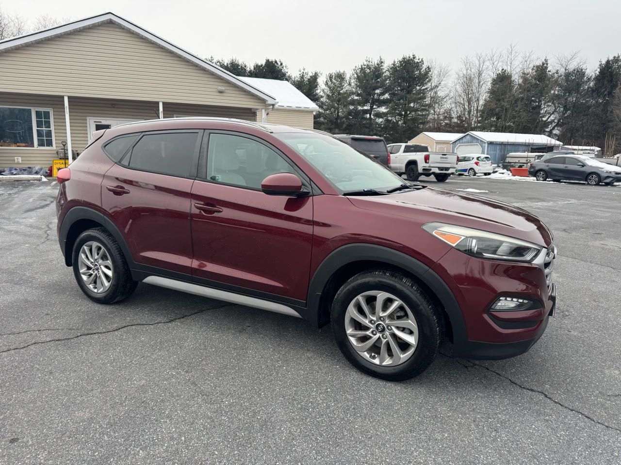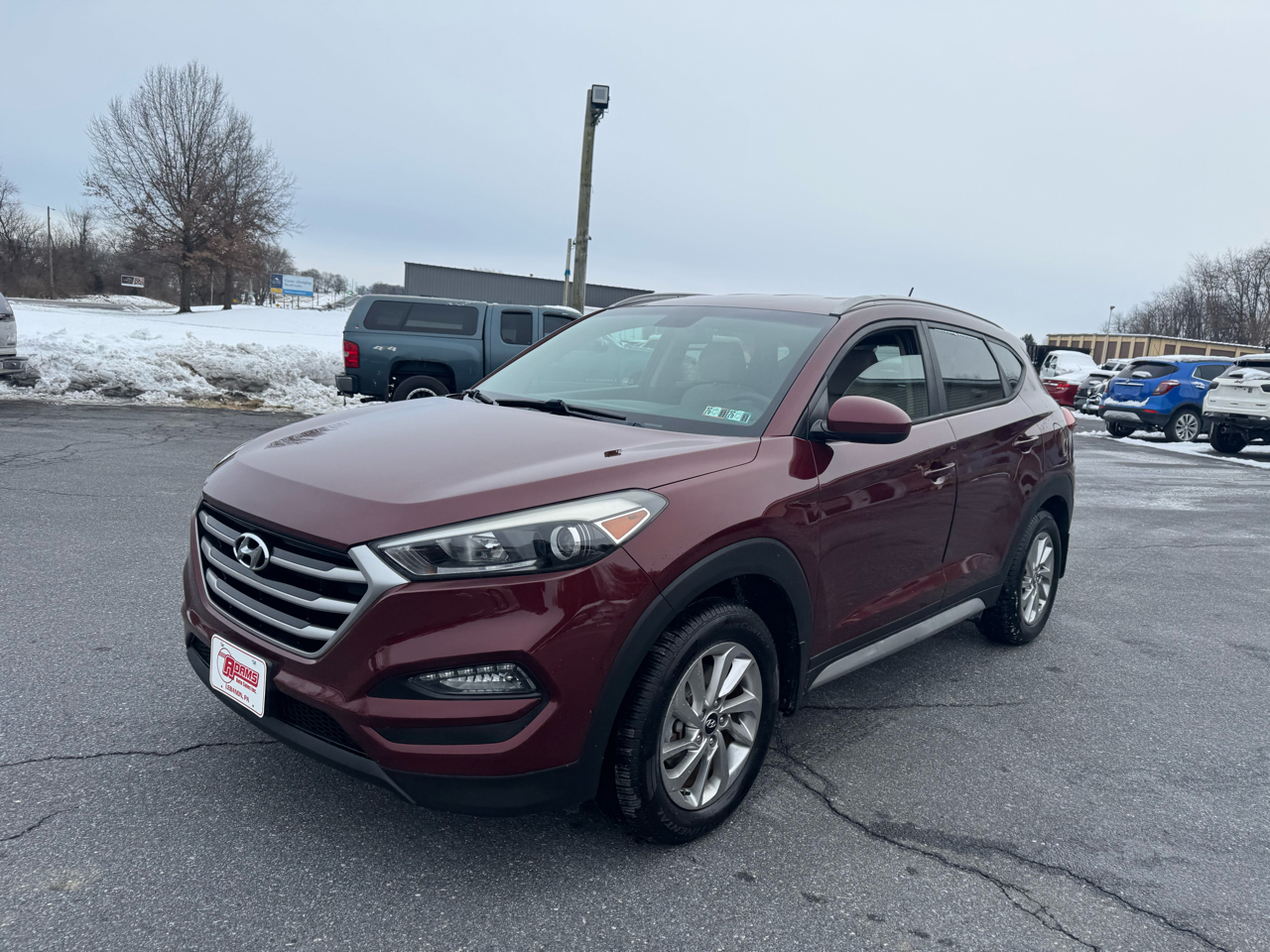 AWD This beautiful maroon 2017 Hyundai Tucson SE AWD is ready to hit the road with you behind the wheel. It is equipped with a 2.0 liter engine 4 cyl and an automatic transmission. It has a backup camera, power seat and alloy wheels. It also has a towing package and privacy. The maroon exterior and beige interior are in excellent condition. Well maintained both inside and out. Only 107,745 original miles. Brand new inspection and emissions, good thru November of 2026. It comes with a 3 month / 4,000 miles (whichever occurs first) powertrain warranty. Ask a salesman for more details. Free Carfax report is available. Hurry in and take this beauty for a test drive today!