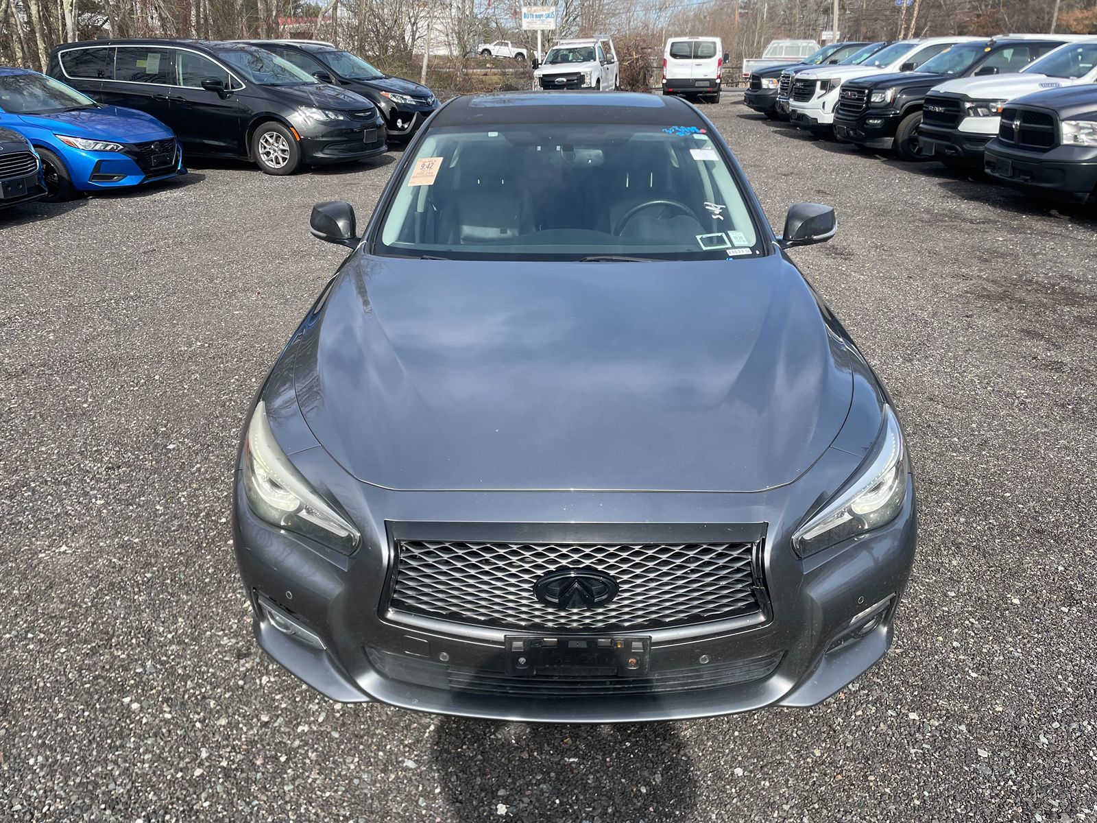 The 2017 INFINITI Q50 3.0t Premium AWD in Graphite Shadow is a striking blend of elegance and performance, with its sleek exterior capturing attention wherever it goes. Under the hood, the 3.0L V6 engine delivers robust power and smooth acceleration, perfectly complemented by the precision of the All Wheel Drive drivetrain. This model's Graphite interior provides a sophisticated and comfortable cabin environment, making each drive a luxurious experience. Safety and convenience are at the forefront of the Q50's design, featuring advanced technologies like a blind spot monitor and forward collision warning for enhanced driver awareness. The vehicle also boasts heated seats, rain-sensing wipers, and parking assist, ensuring both comfort and ease in various driving conditions. The inclusion of a moonroof and LED headlights adds a touch of modern style and brightness to your journeys, while the premium sound system and Bluetooth connectivity allow for an enjoyable travel soundtrack.
