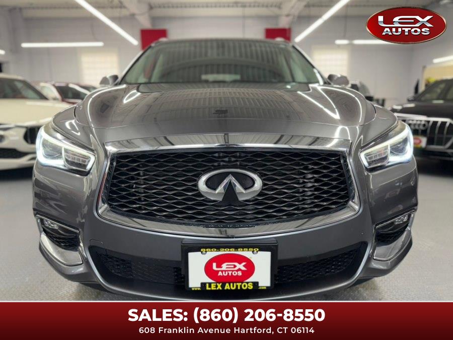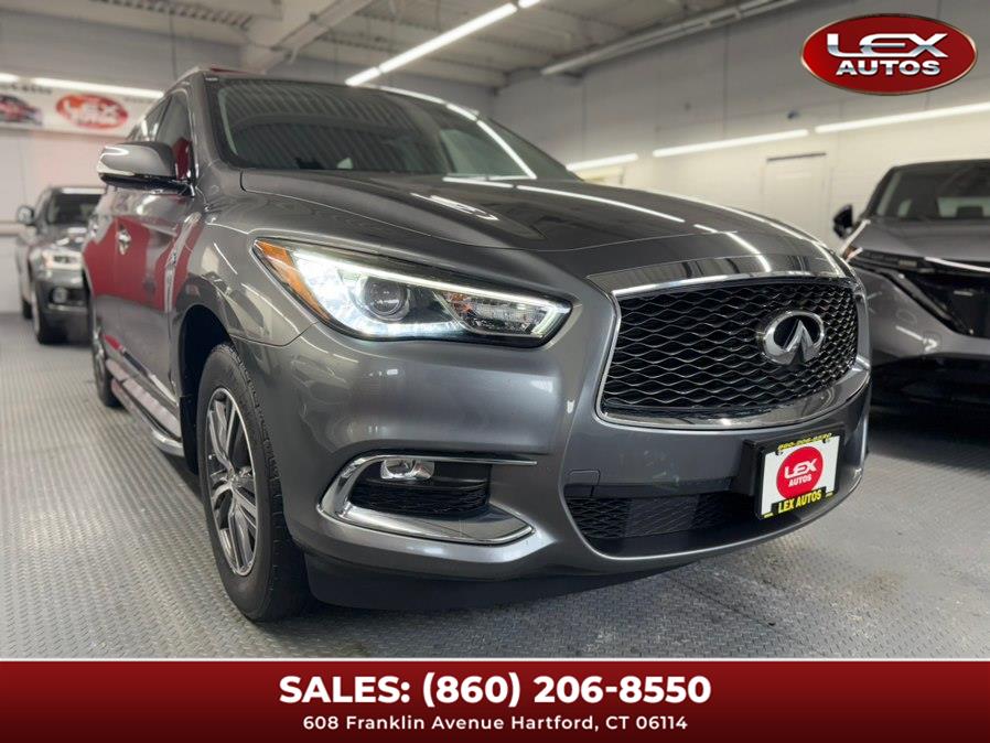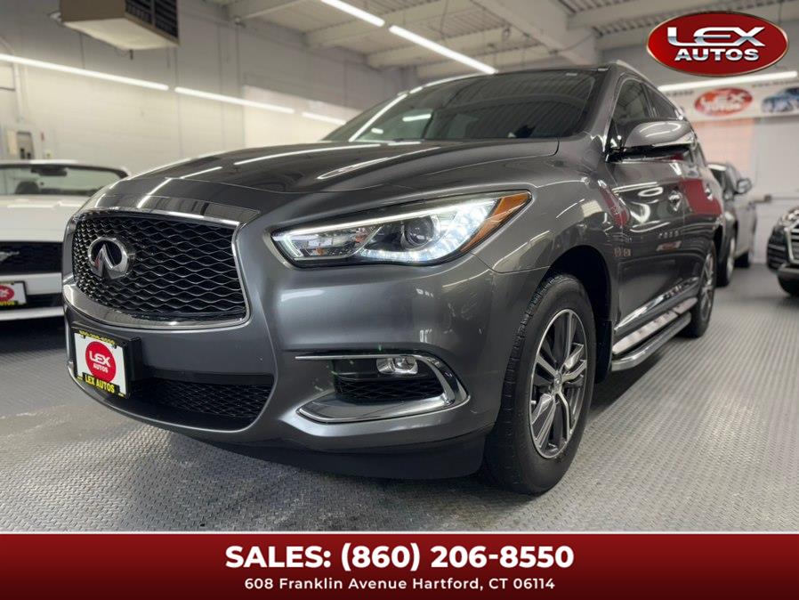 2017 INFINITI QX60 AWD, available for sale in Hartford, Connecticut. This vehicle features a Graphite Shadow exterior with a Graphite Leather interior and is equipped with a 3.5 V6 Cylinder Engine and automatic transmission. The car has 56,657 miles and offers a comfortable and luxurious driving experience.