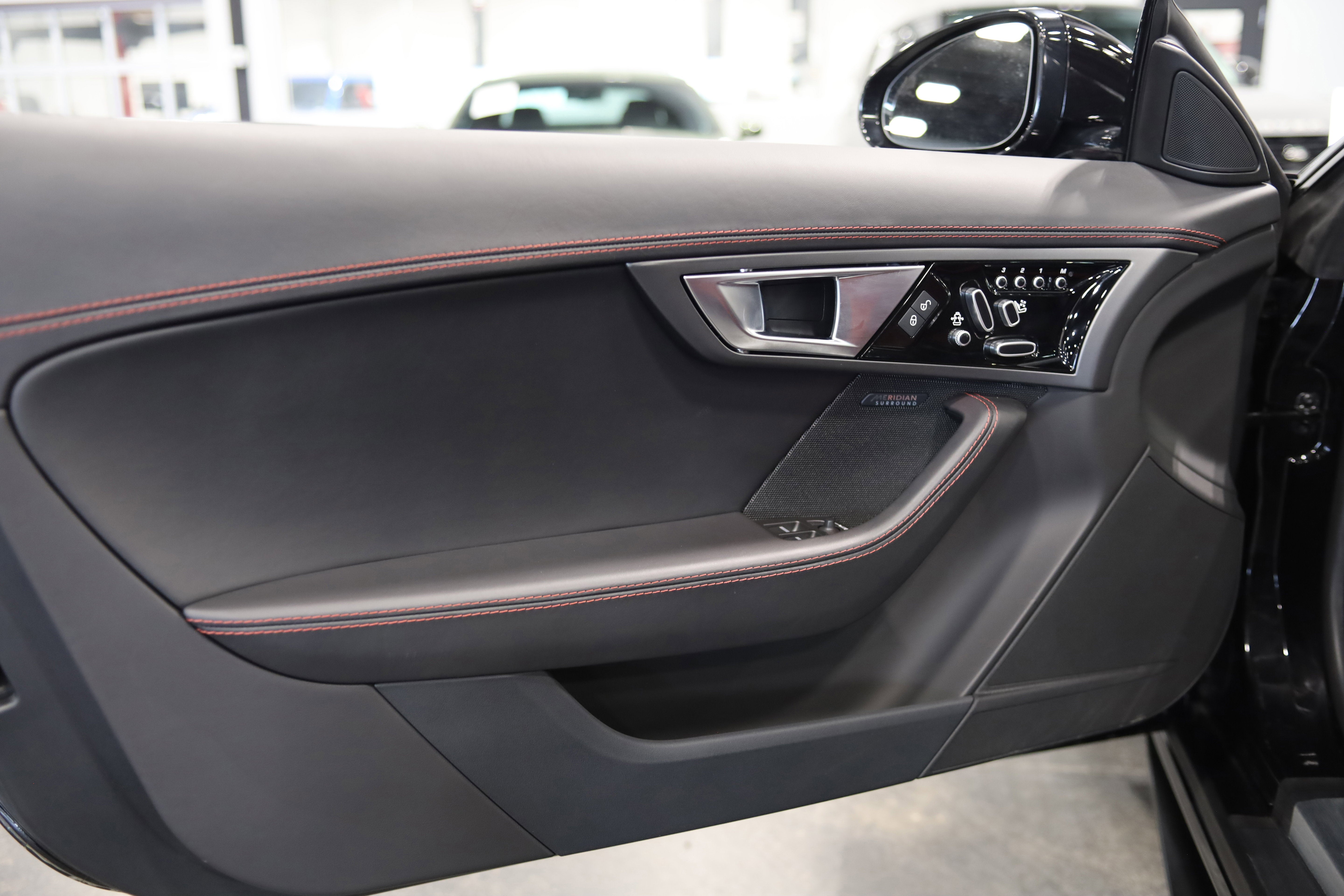 This 2017 Jaguar F-TYPE R AWD Coupe delivers supercharged V8 performance, aggressive styling, and a luxury cockpit finished in Red Leather with Jet stitching. Powered by a 5.0L supercharged V8 and equipped with Jaguar's advanced AWD system, this F-TYPE R offers exceptional grip, handling, and everyday drivability.