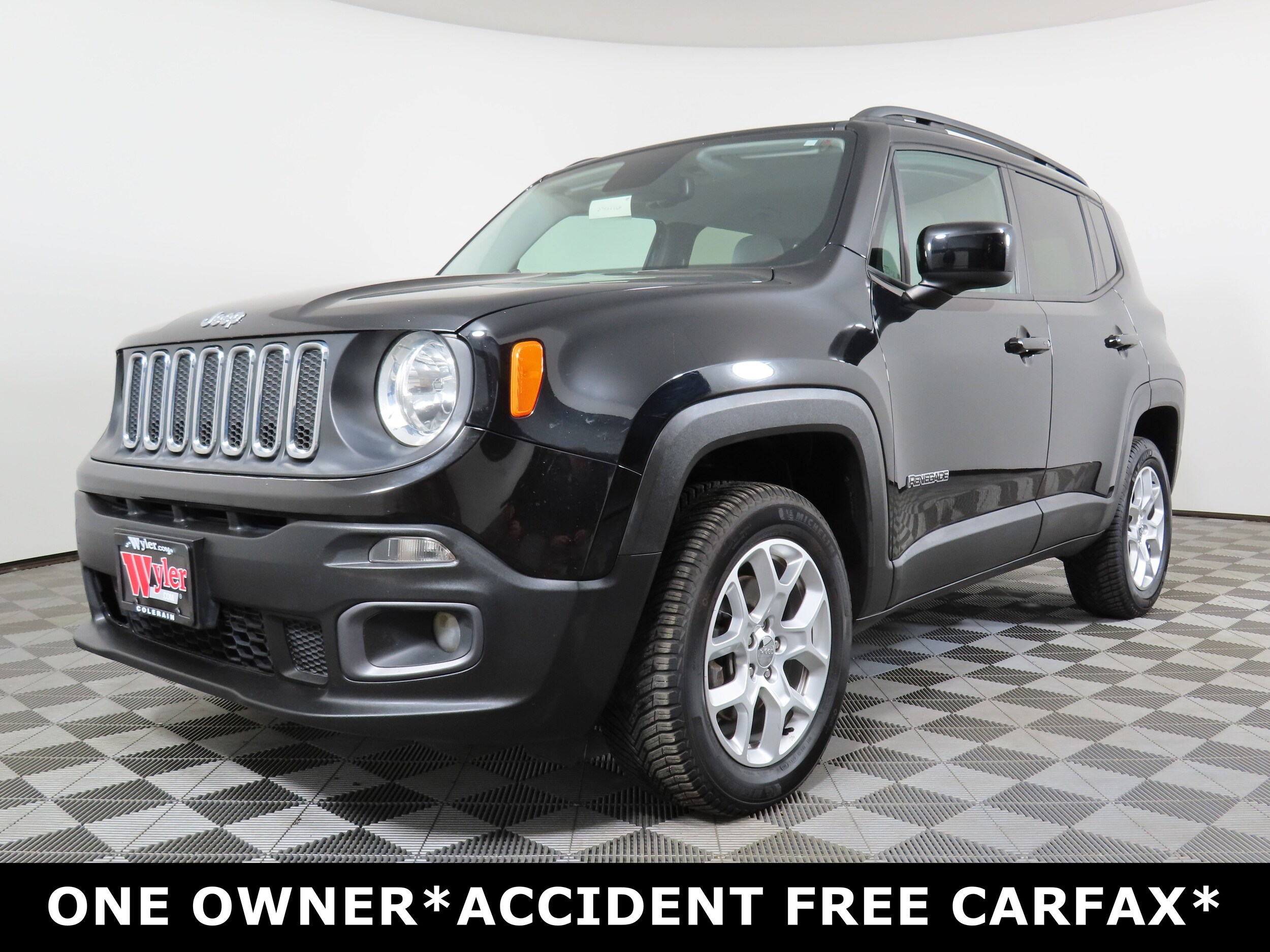 Jeff Wyler Honda of Colerain is excited to offer this charming 2017 Jeep Renegade Latitude in Black. Well equipped with: Cold Weather Group (All-Season Floor Mats, Heated Front Seats, Heated Steering Wheel, PTC Auxiliary Interior Heater, Rain Sensitive Windshield Wipers, and Windshield Wiper De-Icer), Passive Entry Remote Start Package (Passive Entry/Keyless Go), Popular Equipment Group (115V Auxiliary Power Outlet, 40/20/40 Rear Seat w/Trunk Pass-Thru, Air Conditioning ATC w/Dual Zone Control, Auto-Dimming Rear-View Mirror, Power 4-Way Driver Lumbar Adjust, and Power 8-Way Driver Manual 4-Way Passenger Seats), Quick Order Package 27J, 16" x 6.5" Aluminum Wheels, 17" x 7.0" Aluminum Wheels, 4-Wheel Disc Brakes, 6 Speakers, ABS brakes, Air Conditioning, Alloy wheels, AM/FM radio: SiriusXM, Anti-whiplash front head restraints, Brake assist, Cloth Low-Back Bucket Seats, Compass, Delay-off headlights, Driver door bin, Driver vanity mirror, Dual front impact airbags, Dual front side impact airbags, Electronic Stability Control, Four wheel independent suspension, Front anti-roll bar, Front Bucket Seats, Front Center Armrest, Front fog lights, Front reading lights, Fully automatic headlights, Heated door mirrors, Illuminated entry, Knee airbag, Leather steering wheel, Low tire pressure warning, Normal Duty Suspension, Occupant sensing airbag, Outside temperature display, Overhead airbag, Overhead console, Panic alarm, ParkView Rear Back-Up Camera, Passenger door bin, Passenger vanity mirror, Power door mirrors, Power steering, Power windows, Radio data system, Radio: Uconnect 3 w/5" Display, Rear anti-roll bar, Rear window defroster, Rear window wiper, Remote keyless entry, Roof rack: rails only, Speed control, Split folding rear seat, Spoiler, Steering wheel mounted audio controls, Tachometer, Telescoping steering wheel, Tilt steering wheel.