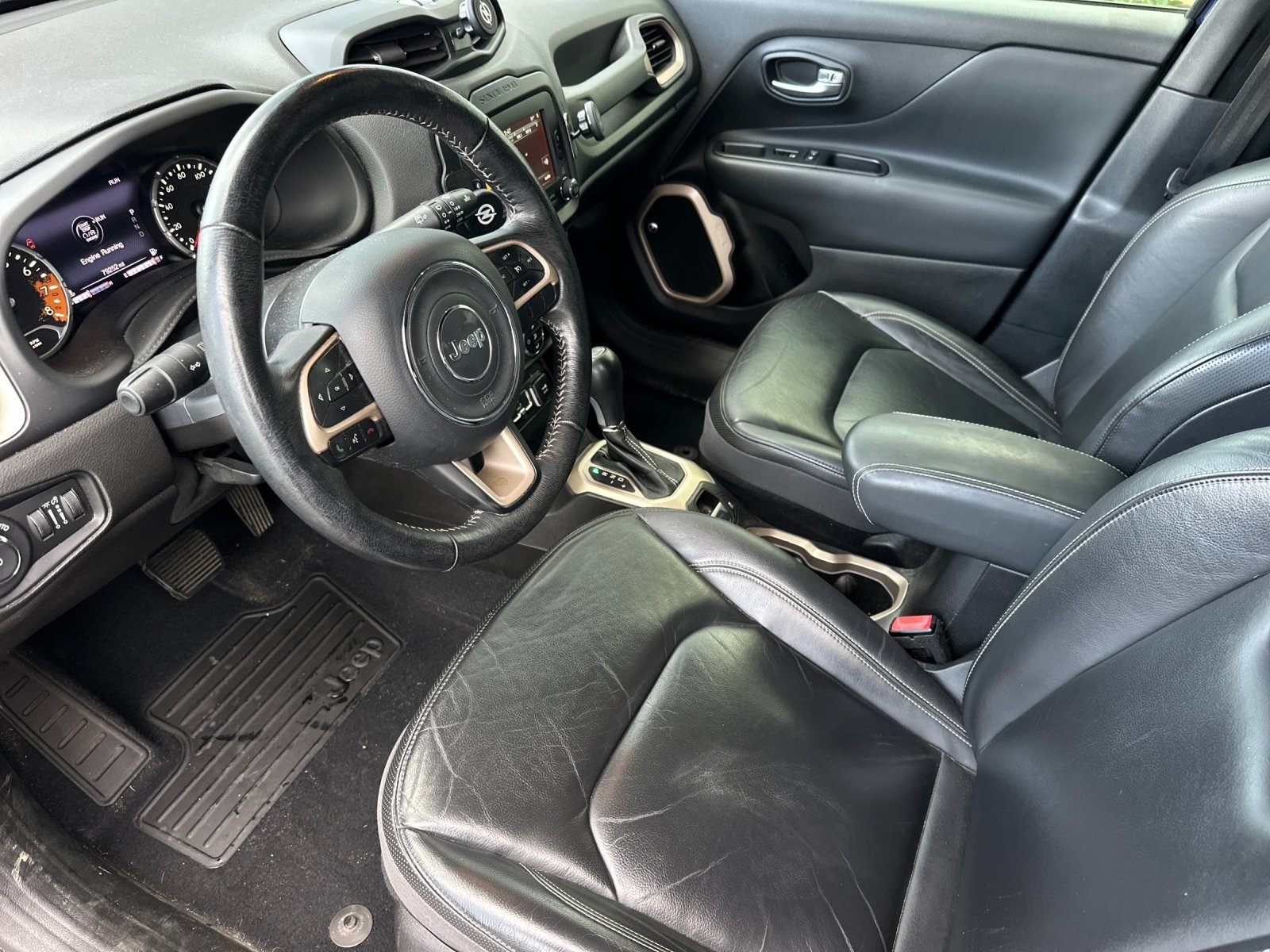 2017 Jeep Renegade Limited Jetset Blue 2.4L I4 MultiAir 21/29 City/Highway MPG 1 Yr Trial (Registration Required), 18" x 7.0" Aluminum Polished Wheels, 18" x 7.0" Aluminum Wheels, 3.734 Axle Ratio, 4 Pin Wiring Harness, 4-Wheel Disc Brakes, 5-Year SiriusXM Traffic Service, 5-Year SiriusXM Travel Link Service, 6 Speakers, 6.5" Navigation Group w/Uconnect, 6.5" Touchscreen Display, ABS brakes, Advanced Technology Group, Air Conditioning, Alloy wheels, AM/FM radio: SiriusXM, Anti-whiplash front head restraints, Auto-dimming Rear-View mirror, Automatic High Beam Headlamp Control, Automatic temperature control, Beats Premium Audio System, Blind Spot & Cross Path Detection, Body Color Roof, Brake assist, Class III Receiver Hitch, Compass, Delay-off headlights, Driver door bin, Driver vanity mirror, Dual front impact airbags, Dual front side impact airbags, Front anti-roll bar, Knee airbag, Low tire pressure warning, Occupant sensing airbag, Overhead airbag, Rear anti-roll bar, My Sky Power/Removable Sunroof, Normal Duty Suspension, Traction control, 4-Wheel Disc Brakes, ABS brakes, Anti-whiplash front head restraints, Dual front impact airbags, Dual front side impact airbags, Front anti-roll bar, Knee airbag, Low tire pressure warning, Occupant sensing airbag, Overhead airbag, Rear anti-roll bar. Reviews: * Lots of character with a classic Jeep look; agile handling when going around turns; plenty of easy-to-use technology features; best-in-class off-road capability with Trailhawk model. Source: Edmunds Clean CARFAX. Priced below KBB Fair Purchase Price! Odometer is 8520 miles below market average! Our Best Price Up Front, No Games or Gimmicks. Our advertised price is for a retail type purchase and may not be available for Fleet or Commercial use type purchase; please call us to confirm.