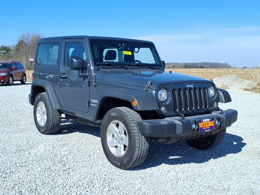 2017 Rhino Clearcoat Jeep Wrangler Sport 3.6L V6 24V VVT 4WD This Jeep Wrangler has many features and is well equipped including, 17" x 7.5" Aluminum Wheels, Air Conditioning, Chrome/Leather Wrapped Shift Knob, Connectivity Group, Leather Wrapped Steering Wheel, LED Fog Lamps, LED Lighting Group, LED Reflector Headlamps, Quick Order Package 24S, Remote USB Port, Tire Pressure Monitoring Display, Uconnect Voice Command w/Bluetooth, Vehicle Information Center. Clean CARFAX. Odometer is 1997 miles below market average! Thank you for viewing your next Auto/Truck from Myers Auto Center, Chrysler Dodge Jeep Ram.