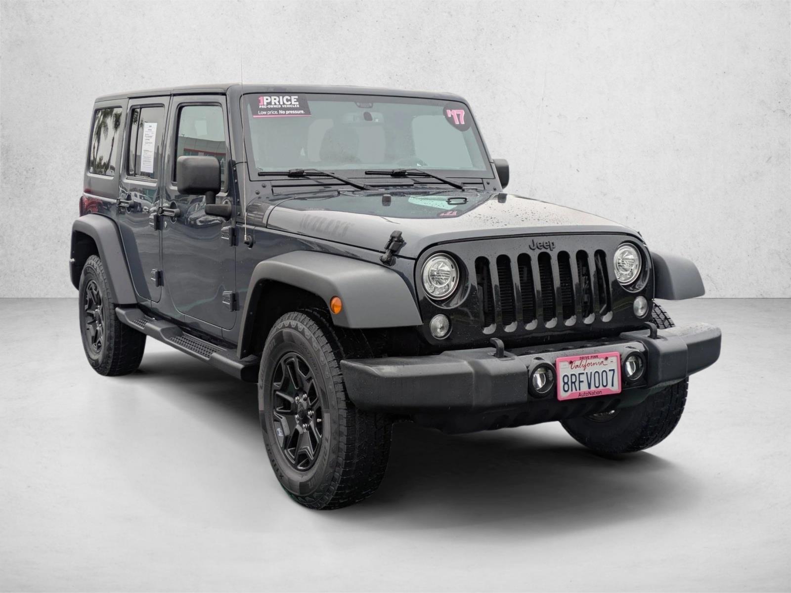 This vehicle includes a Money-Back Guarantee* and passed our precise inspection process. Best of all the price you see is the price you pay. No haggling. No back and forth. No pressure. And this price is so good it is guaranteed. *Money-Back Guarantee is valid for 5 days or 250 miles, whichever comes first. Subject to certain terms and conditions. See store for details. Some restrictions apply. AutoNation Toyota Irvine is pleased to be currently offering this 2017 Jeep Wrangler Unlimited Sport with 109,085mi. This Jeep includes: ENGINE: 3.6L V6 24V VVT (STD) V6 Cylinder Engine Gasoline Fuel. This Jeep Wrangler Unlimited Sport is an incredibly versatile vehicle that is a "must have" for any family. This vehicle comes with 4WD for better traction on unstable surfaces, like snow and dirt to give you the edge over anything you might encounter on the road. More information about the 2017 Jeep Wrangler Unlimited: With prices starting at a little under $23,000 with standard 4-wheel drive, the classic Wrangler is one of the best SUV values available. The 6-speed manual transmission helps the Wrangler achieve a decent 17 mpg city and 21 mpg highway rating. Jeep considers the Wrangler's off-road prowess integral to the brand and they continue to make one of the most capable 4-wheel drive vehicles available. This model sets itself apart with Iconic styling, 2- and 4-door configurations available, and impressive off-road prowess.