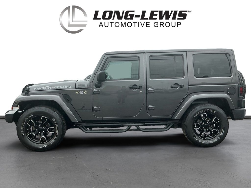 2017 Jeep Wrangler Unlimited Sahara Granite Crystal Metallic Clearcoat Unlimited Sahara 4WD 5-Speed Automatic 3.6L V6 24V VVT 18" x 7.5" Polished Satin Carbon Wheels, 3.21 Rear Axle Ratio, 4-Wheel Disc Brakes, 40GB Hard Drive w/28GB Available, 5-Year SiriusXM Travel Link Service, 6.5" Touchscreen Display, 8 Speakers, ABS brakes, Air Conditioning, Alloy wheels, AM/FM radio: SiriusXM, Audio Jack Input for Mobile Devices, Auto-dimming Rear-View mirror, Black 3-Piece Hard Top, Black Accent Stitching, Black Fuel Filler Door, Body Color 3-Piece Hard Top, Body Color Grille w/Black Accents, Brake assist, CD player, Cloth Seats w/Adjustable Head Restraints, Compass, Connectivity Group, Delete Sahara Badge, Delete Sunrider Soft Top, Driver door bin, Driver vanity mirror, Dual front impact airbags, Dual Top Group, Electronic Stability Control, Freedom Panel Storage Bag, Front anti-roll bar, Front Bucket Seats, Front Center Armrest w/Storage, Front fog lights, Front reading lights, Fully automatic headlights, Gloss Black Fascia Applique, Glossy Black Jeep Badge, GPS Navigation, Heated door mirrors, Heated Front Seats, Heavy Duty Suspension w/Gas Shocks (DISC), Hood w/Power Bulge, Illuminated entry, Integrated roll-over protection, JK Smoky Mountain Hood Decals, Leather steering wheel, Low Gloss Black Wrangler Decal, Low tire pressure warning, Manufacturer's Statement of Origin, Midnight Star Interior Accents, Millennium Fabric Sport Bar Cover, MOPAR Black Tail Lamp Guards, MOPAR Coat Hooks & Grab Handles, MOPAR Slush Mats, Occupant sensing airbag, Outside temperature display, Panic alarm, Passenger door bin, Passenger vanity mirror, Power door mirrors, Power steering, Power windows, Premium Black Sunrider Soft Top, Quick Order Package 24Y Smoky Mountain (DISC), Radio data system, Radio: 130, Radio: 430 Nav, Rear anti-roll bar, Rear Window Defroster, Rear Window Wiper/Washer, Remote keyless entry, Remote USB Port, Security system, SiriusXM Travel Link, Smoky Mountain Edition, Speed control, Split folding rear seat, Steering wheel mounted audio controls, Tachometer, Tilt steering wheel, Tire Pressure Monitoring Display, Traction control, Trip computer, Uconnect Voice Command w/Bluetooth, Variably intermittent wipers, Vehicle Information Center, Wheels: 18" x 7.5" High Gloss Blk Polished (DISC).
