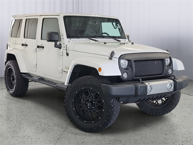 Wrangler Unlimited Sahara, 4D Sport Utility, 3.6L V6 24V VVT, 5-Speed Automatic, 4WD, Bright White Clearcoat, Black Cloth, 40GB Hard Drive w/28GB Available, 5-Year SiriusXM Travel Link Service, 6.5" Touchscreen Display, Audio Jack Input for Mobile Devices, Body Color Appliques Front Bumper, Body Color Appliques Rear Bumper, Body Color/Accent Color Grille, Class II Receiver Hitch, Dual front impact airbags, Front anti-roll bar, Front Bucket Seats, GPS Navigation, Heated door mirrors, Heavy Duty Suspension w/Gas Shocks (DISC), Leather steering wheel, Power door mirrors, Quick Order Package 24G, Radio: 130, Radio: 430 Nav, Remote USB Port, SiriusXM Travel Link, Trailer Tow Group, Trailer Tow w/4-Pin Connector Wiring.