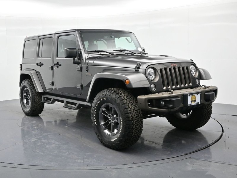 2017 Jeep Wrangler Unlimited 75th Anniversary Edition - Granite Crystal Metallic Clearcoat. Celebrate a legacy with this rare 2017 Jeep Wrangler Unlimited 75th Anniversary Edition. Dressed in striking Granite Crystal Metallic Clearcoat, this trail-ready icon combines classic Jeep ruggedness with exclusive anniversary styling. Whether you're navigating city streets or conquering off-road paths, this Wrangler is built to deliver an unforgettable driving experience.