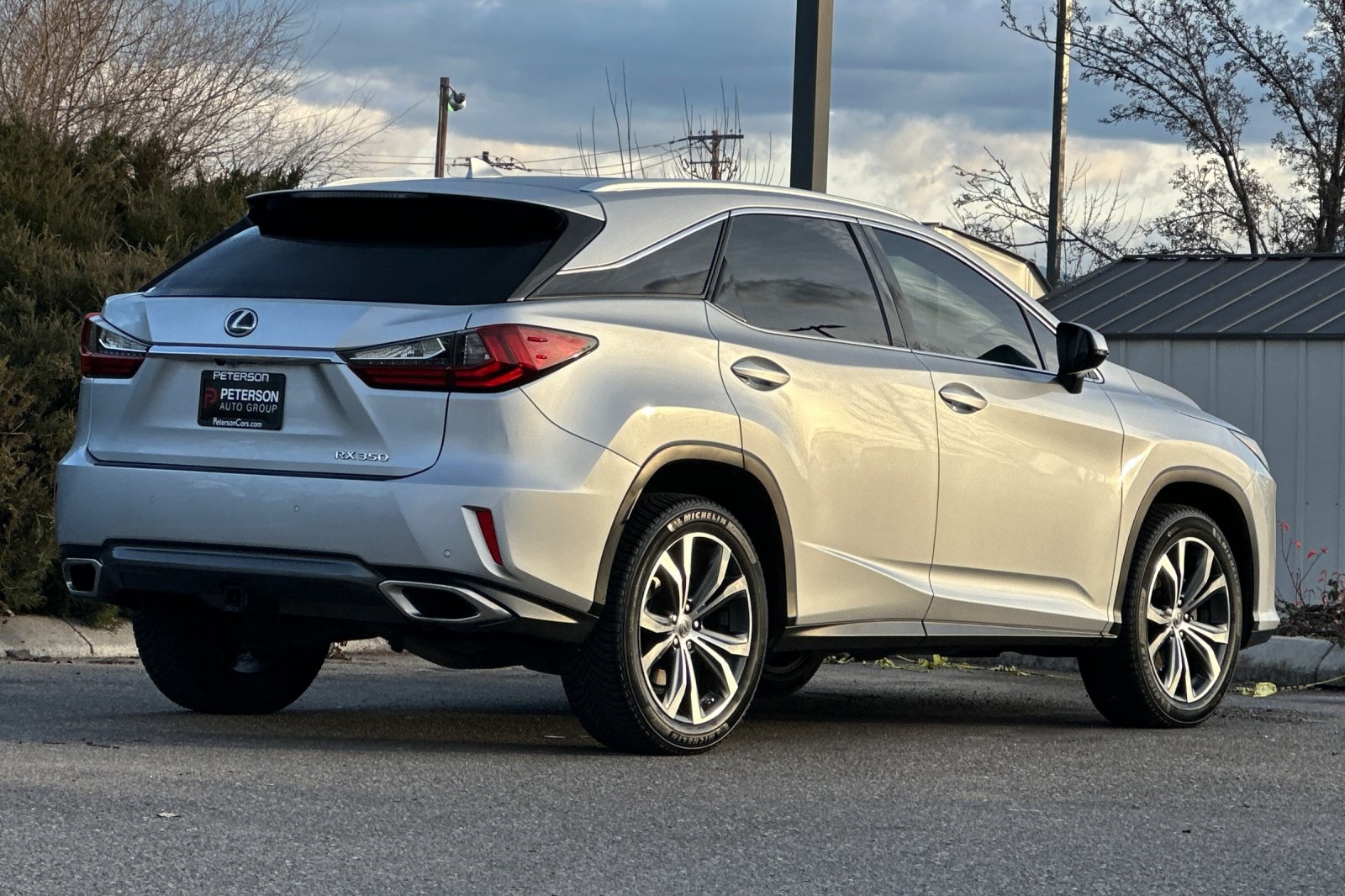 Silver Lining Metallic 2017 Lexus RX 350 AWD 8-Speed Automatic 3.5L V6 DOHC 24V ABS brakes, Active Cruise Control, Alloy wheels, Compass, Electronic Stability Control, Front dual zone A/C, Heated door mirrors, Illuminated entry, Low tire pressure warning, Power Liftgate, Remote keyless entry, Traction control. 19/26 City/Highway MPG Priced below KBB Fair Purchase Price! Call us today to schedule your VIP test drive!