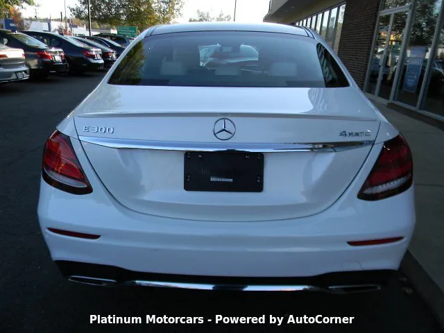 This immaculate 2017 Mercedes-Benz E300 4MATIC! One owner, Carfax certified vehicle! Origi MSRP $65,735. Finished in Designo Diamond White Metallic over Macchiato Beige/Black leather interior options are Sport Package, Comfort Access Keys, Navigation MB Apps, Rear View Camera System, Parktronic with Active Park Assist, Collision Prevention Assist, Blind Spot Assist and Lane Keeping Assist, Panorama Sunroof, full LED lamps white active curve illumination, Adaptive Highbeam Assist, Heated Front Seat, Heated Telescoping Leather Steering Wheel with Shift Paddles, Natural Grain Brown Wood Trim, Automatic Power Trunk Closer, Multi Color Ambient Lighting, 19" AMG 5-Twin Spoke Alloys, Smartphone Integration, Premium Burmaster Surround Audio System, Satellite Radio and much more! Meticulously maintained financing available at low rates and extended warranties are available up to 100K miles! Please call or email us to schedule time to come in for a test drive. It's a great deal! Don't miss it!
