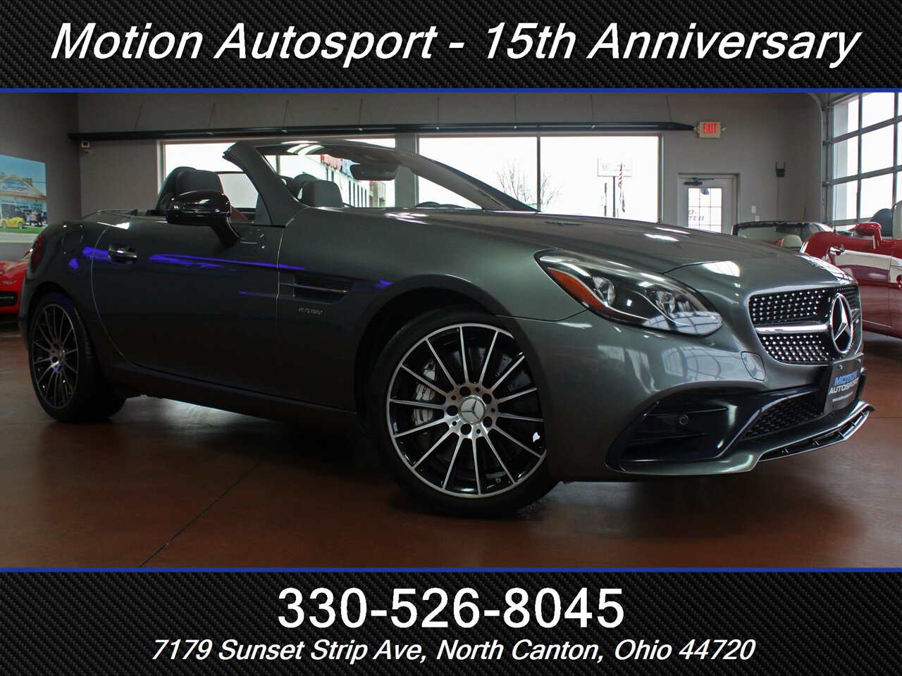 Indium Grey Metallic never looked this dangerous. Meet the 2017 Mercedes-Benz SLC AMG SLC 43 — the compact convertible that wears performance like a tailored suit. Under the hood sits the thumping 3.0L Twin-Turbo V6 delivering 362 hp and 384 lb-ft of torque, paired to Mercedes’ slick automatic transmission that’s been AMG-tuned for sharper shifts and a little attitude. The result? A car that begs to be driven, and somehow still plays nicely at the pump: an EPA-estimated 20 MPG city / 29 MPG highway. This example is especially irresistible: Bengal Red/Black interior for drama, Indium Grey Metallic outside for composed menace, and exceptionally low miles — under 38,000 (that’s averaging less than 4,000 miles per year). Clean CARFAX, excellent overall condition. In short: barely-used, very sassy, and totally ready. Why this one? Because it combines true AMG performance with low miles, bold styling and a head-turning color combo. If you want a sporty convertible that looks sharp, sounds mean, and still has plenty of life left to enjoy, this SLC 43 is your kind of trouble. Ready to take it for a spin? This Indium Grey beauty with Bengal Red/Black interior won’t wait forever. We take trades and ship vehicles nationwide. Visit our website for full pricing details.