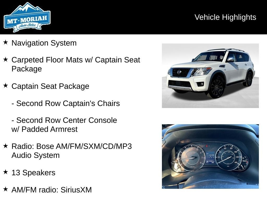 Recent Arrival! 2017 Nissan Armada. For more information or to schedule a test drive call 901-368-5505. We offer a huge selection of luxury and affordable pre-owned vehicles. All prices are plus tax, title and license. Guaranteed credit approval! Everyone is approved. Call 901-368-5505 for information.