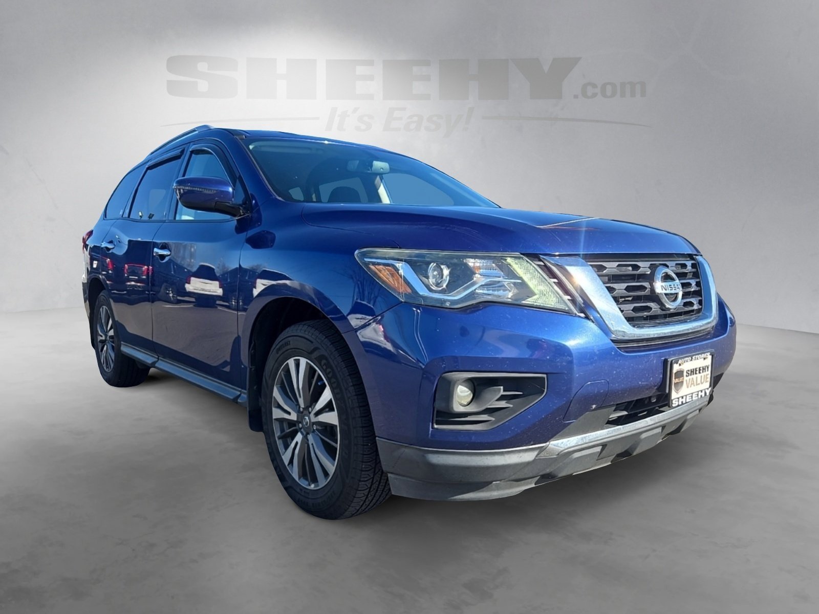 2017 Nissan Pathfinder SV 4WD at Sheehy GMC Subaru of Fredericksburg! This Pathfinder has an exterior color of Caspian Blue with Charcoal Cloth interior. This preowned Nissan Pathfinder is equipped with amazing options like: 3rd row seats, Blind Spot Warning, Power door mirrors, Power windows, Rear Parking Sensors, and Remote keyless entry. CARFAX One-Owner. Certification Program Details: Sheehy Value Car located at Sheehy GMC Subaru of Fredericksburg only! All our Sheehy Value Cars come with a 30 Day/1,000-mile warranty, upfront clear and Sheehy-It’s Easy Pricing, CARFAX history report, backed by our 5 day/300 mile money-back guarantee and pass Virginia inspection. See Sheehy GMC Subaru of Fredericksburg for details. This vehicle is non-transferable to other Sheehy Locations. Some vehicles may have unrepaired safety recalls. Sheehy Auto Stores is not a manufacturer-authorized repair facility for all brands, but your local same-brand dealer will provide recall repair services for free.