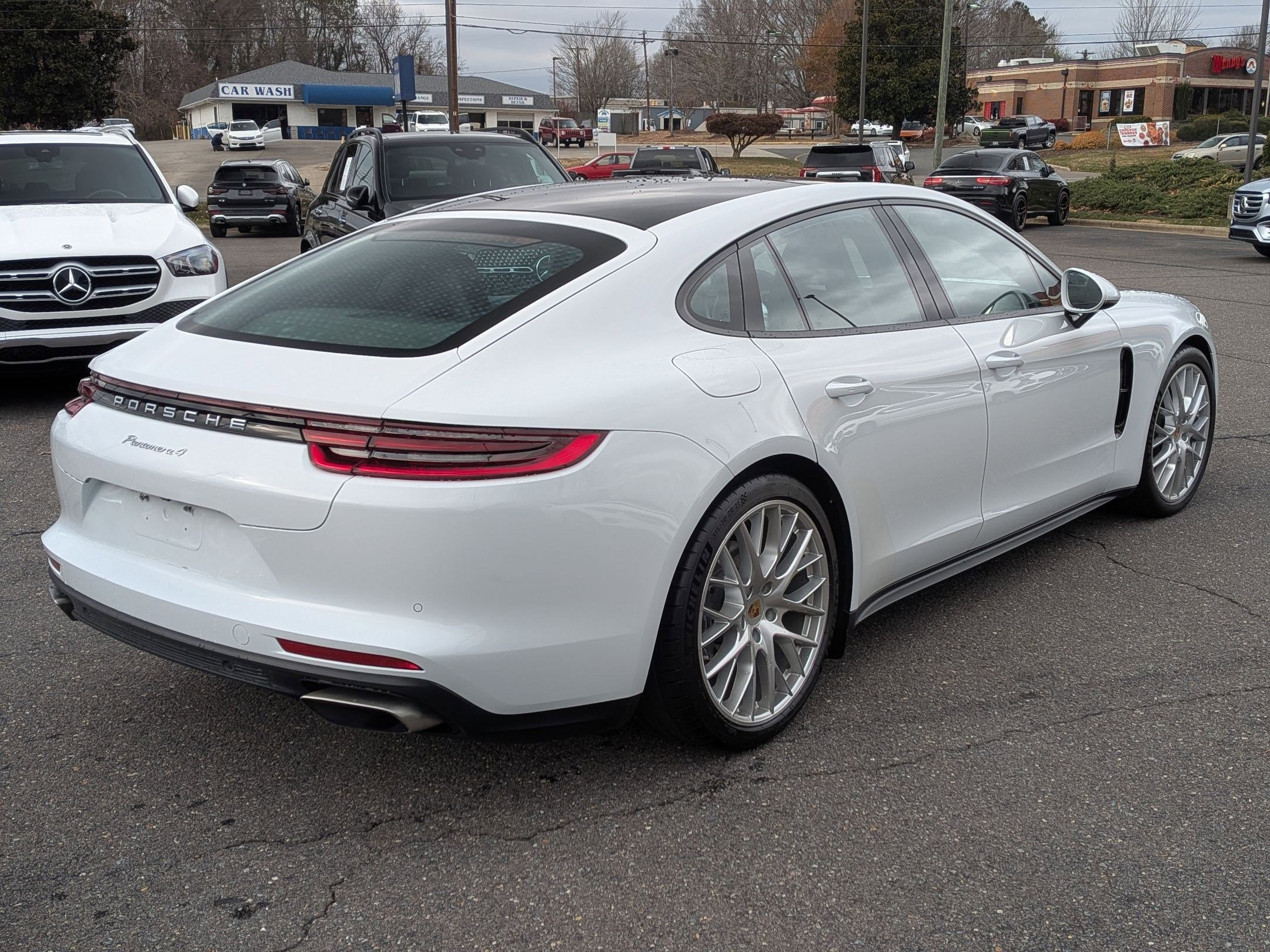 Clean CARFAX. Mercedes-Benz of Winston Salem is proud to present you with another True Market Priced Pre-Owned Vehicle. This 2017 Porsche Panamera 4 is loaded with the following Factory Options: AWD, 10 Speakers, 4-Wheel Disc Brakes, 8-Way Power Seats, ABS brakes, Adaptive suspension, Air Conditioning, Alloy wheels, AM/FM radio: SiriusXM, Apple CarPlay, Auto-dimming door mirrors, Auto-dimming Rear-View mirror, Automatic temperature control, Brake assist, Bumpers: body-color, CD player, Compass, Delay-off headlights, Driver door bin, Driver vanity mirror, Dual front impact airbags, Dual front side impact airbags, DVD-Audio, Electronic Stability Control, Exterior Parking Camera Rear, Four wheel independent suspension, Front anti-roll bar, Front Bucket Seats, Front Center Armrest, Front dual zone A/C, Front reading lights, Fully automatic headlights, Garage door transmitter: HomeLink, Heated door mirrors, Heated front seats, Illuminated entry, Knee airbag, Leather Shift Knob, Leather steering wheel, Low tire pressure warning, Memory seat, Navigation System, Occupant sensing airbag, Outside temperature display, Overhead airbag, Overhead console, Panic alarm, Partial Leather Seat Trim, Passenger door bin, Passenger vanity mirror, Porsche Communication Management, Power door mirrors, Power driver seat, Power Liftgate, Power moonroof, Power passenger seat, Power steering, Power windows, Radio data system, Rain sensing wipers, Rear anti-roll bar, Rear fog lights, Rear reading lights, Rear seat center armrest, Rear side impact airbag, Rear window defroster, Remote keyless entry, Security system, Speed control, Split folding rear seat, Spoiler, Steering wheel mounted audio controls, Tachometer, Telescoping steering wheel, Tilt steering wheel, Traction control, Trip computer, Variably intermittent wipers, and Wheels: 19" Panamera. AWD.