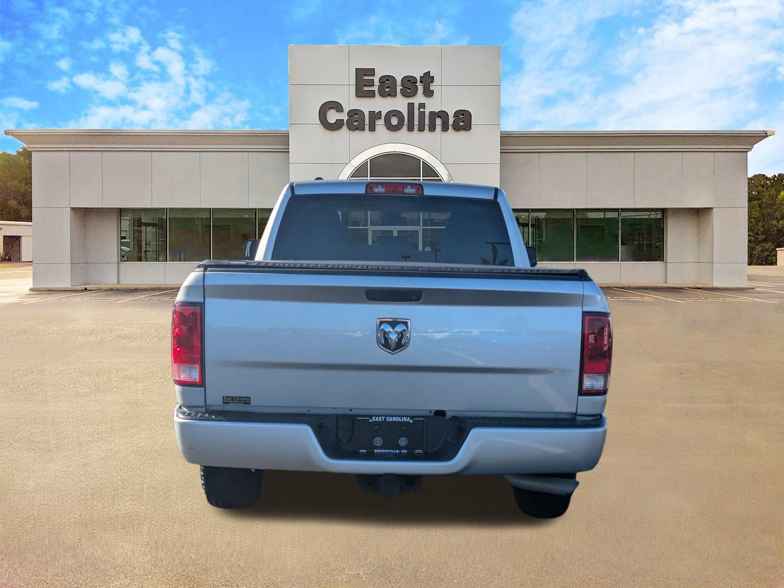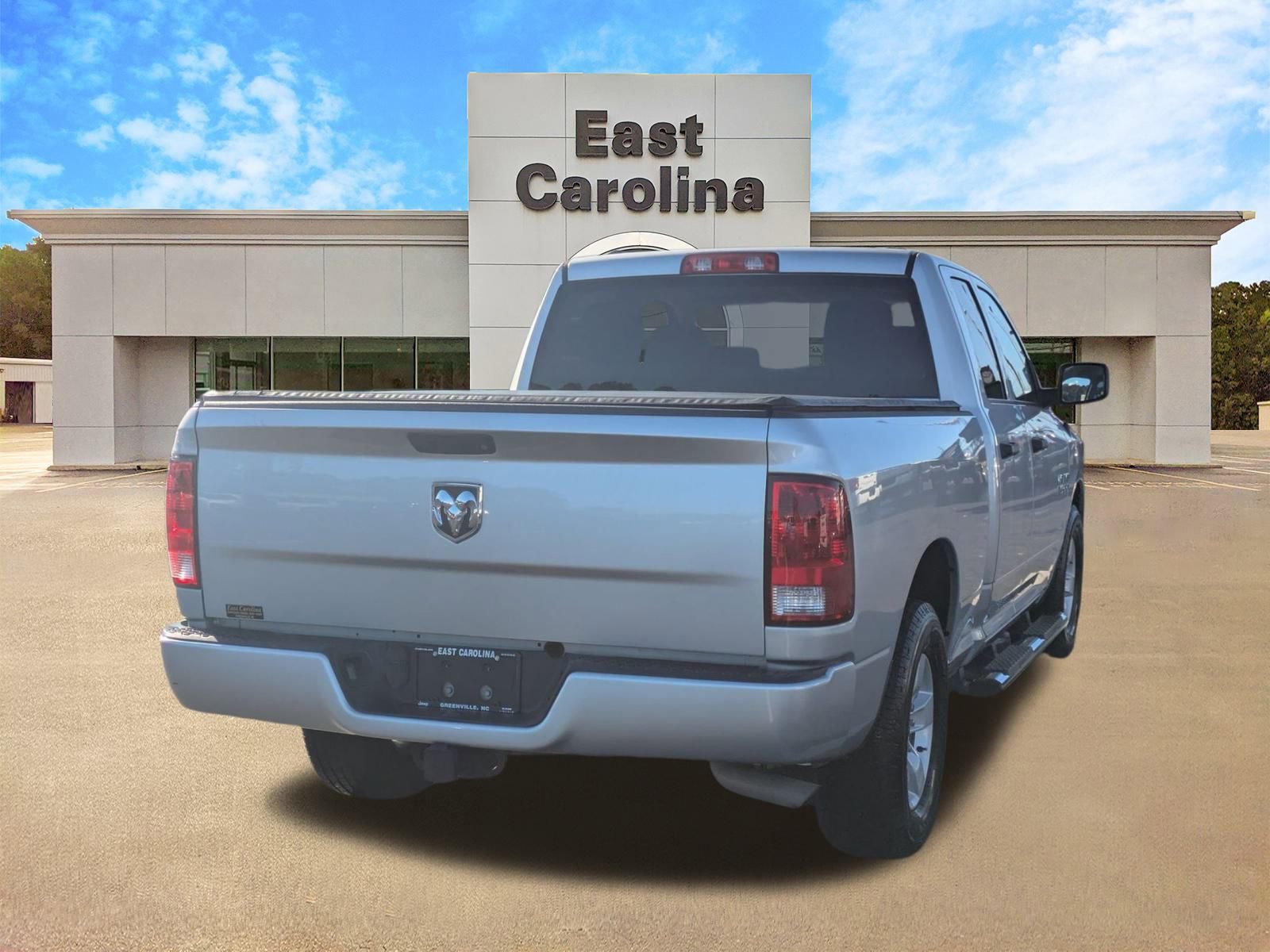 Used 2017 Ram 1500 Express Truck Quad Cab located at East Carolina Chrysler Dodge Jeep Ram FIAT. This vehicle features a V-6 engine, rear-wheel drive, and a comfortable interior with seating for six. The exterior is Bright Silver, and the interior is Diesel Gray/Black. The truck is equipped with a bedliner, alloy wheels, and a range of convenience features. A negotiable administration fee, up to $115, may be added to the price of the vehicle.