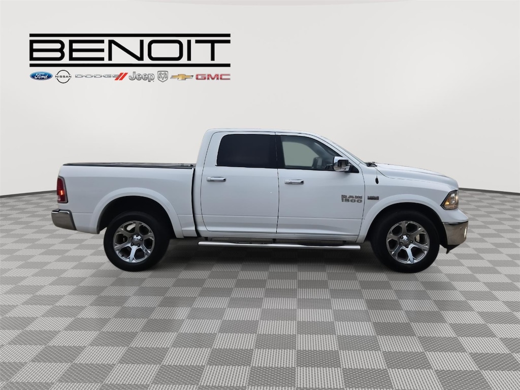 Rev up your engines, folks, because we've got the used cars of your dreams at Benoit Motors! Our lot is jam-packed with the coolest rides around, from sleek sports cars to rugged SUVs. But that's not all - we've got financing available for everyone, so you can hit the road in style without breaking the bank. And all of our used cars go through a rigorous 120-point inspection, so you know you're getting a reliable ride that's built to last. At Benoit Motors, we're the go-to dealer for all your used car needs. Our friendly and knowledgeable staff are here to help you find the perfect car for your lifestyle and budget. So come on down and test drive your dream ride today! But be warned - once you get behind the wheel of one of our used cars, you won't want to leave without it. So what are you waiting for? Come see us at Benoit Motors and let the good times roll! 2017 Ram 1500 Laramie Bright White Clearcoat with Lt Frost Beige/Brown Interior. ENGINE: 5.7L V8 HEMI MDS VVT, TRANSMISSION: 8-speed automatic (8HP70), QUICK ORDER PACKAGE 26H LARAMIE, 3.92 rear axle ratio, tires: P275/60R20 BSW AS, monotone paint, Bright White Clearcoat, Brown/Lt Frost Beige, leather trimmed bucket seats, Convenience Group, anti-spin differential rear axle, remote start system, 32 gallon fuel tank, power sunroof, rear window defroster, LED bed lighting, radio: Uconnect 3C NAV W/8.4 DISPLAY, single disc remote CD player, ParkSense front/rear park assist system, manufacturer's statement of origin.