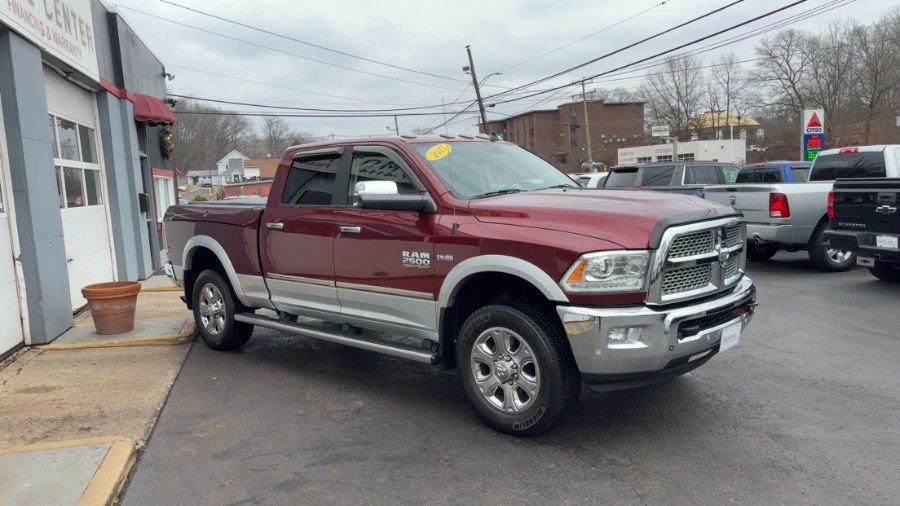 This 2017 Ram 2500 Laramie 4x4 Crew Cab 6'4" Box is available for sale in Waterbury, Connecticut. It features a Red exterior and a Leather interior. The vehicle is equipped with a 6.4L 8-cylinder engine and automatic transmission. Please confirm the accuracy of the specifications provided above with the dealer's representative.