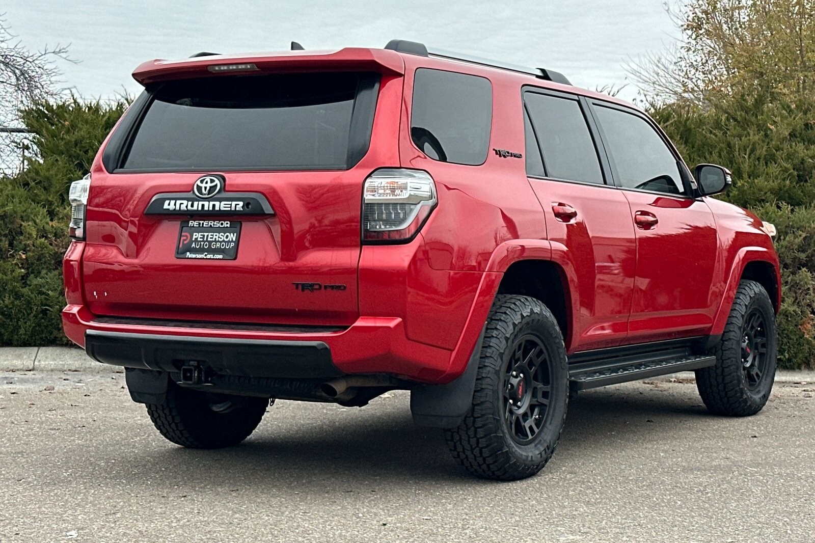 Recent Arrival! Odometer is 14097 miles below market average! Our tough-as-nails No Accidents Reported, Miles Below Market Average 2017 Toyota 4Runner TRD Pro 4WD in Barcelona Red Metallic is an off-road enthusiast's dream come true! Powered by a 4.0 Liter V6 that generates 270hp matched with a 5 Speed Automatic transmission with Manual shift mode for easy passing. This Four Wheel Drive SUV scores nearly 22mpg on the road, plus tows up to 4,700 pounds! Have a blast tackling even the most demanding trails armed with a locking rear differential, crawl control, a multi-terrain select system, a lifted front suspension, TRD-tuned front springs, a power sunroof, and Bilstein high-performance shocks. Our strong TRD Pro is ready to get dirty with its menacing grille and matte black wheels. Once inside our TRD Pro, slide into SofTex-trimmed heated seats and grip the leather-wrapped steering wheel with audio and Bluetooth hands-free phone and voice command. A 40/20/40 split seat offers versatility and reclines for additional comfort in the rear. Maintain an innovative connection to your digital world thanks to Entune Premium Audio with Navigation and Apps, or crank up your favorite tunes on available HD/satellite radio as you take total command of the road in your 4Runner! Whatever your adventure, you'll be kept out of harm's way with Toyota and carefully designed advanced safety features. A phenomenal blend of utility, dependability, capability, and attitude, our 4Runner TRD Pro lets you take the adventure to another level! Save this Page and Call for Availability. We Know You Will Enjoy Your Peterson Toyota Test Drive Towards Ownership! For additional information, call or come in and speak with one of our Toyota specialists at Peterson Toyota 208-378-9000!