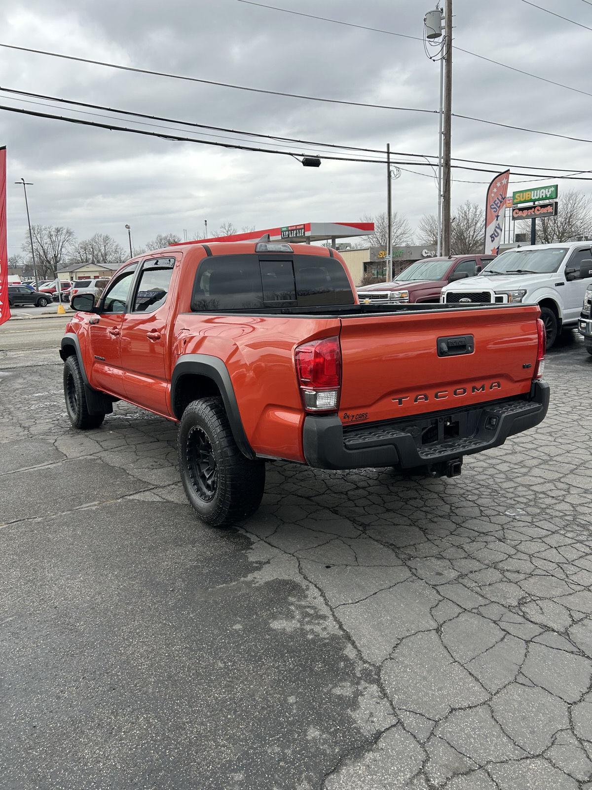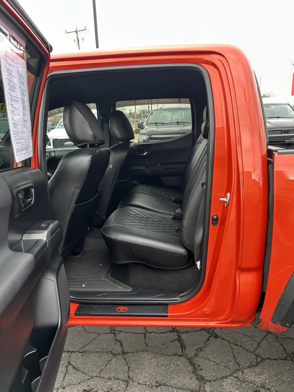 This 2017 Toyota Tacoma TRD Off Road, has a Inferno exterior and a Black/Orange interior color. 120,334 miles. Give us a call in Larwill 260-327-3270 or Goshen at 574-971-5419 and Warsaw IN at 574-267-2277.